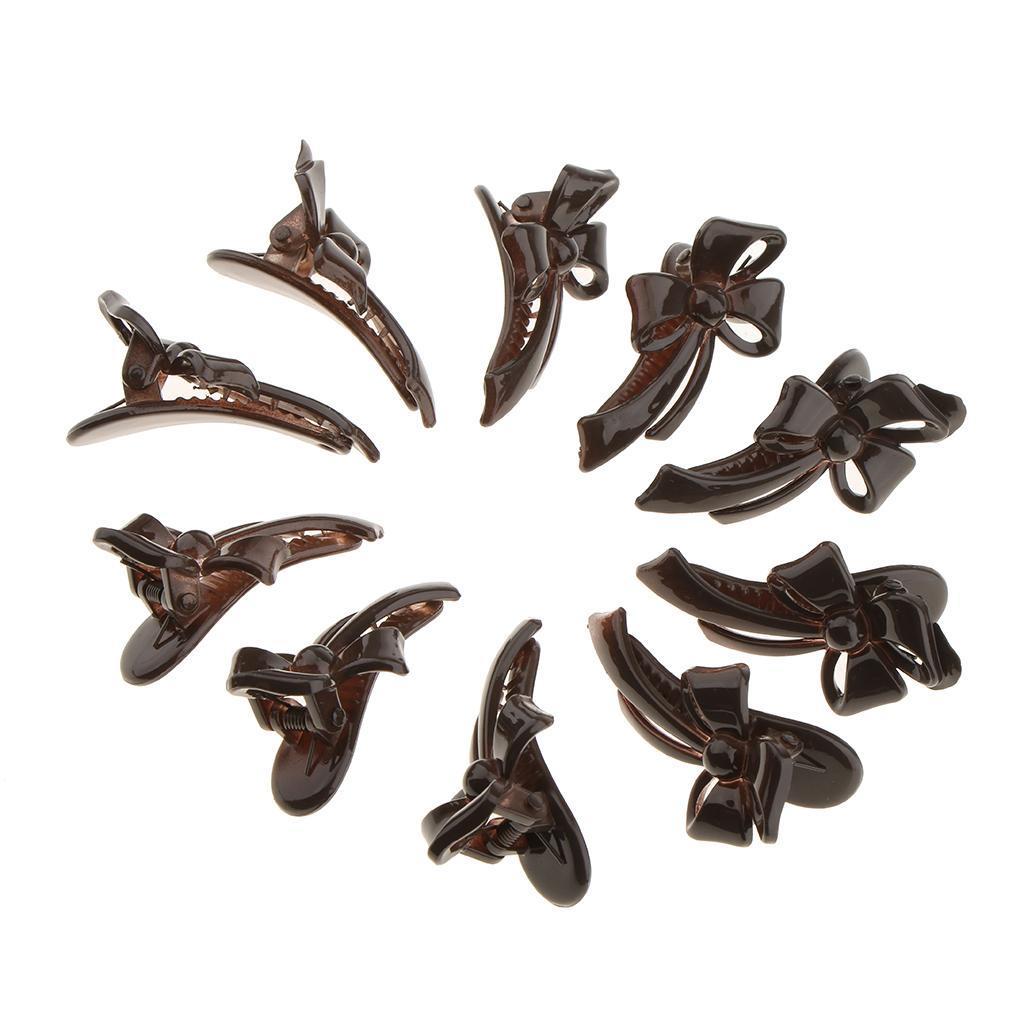 10 Piece Cute Acrylic Bow Hair Barrettes Clips Hairpins for Girls Coffee