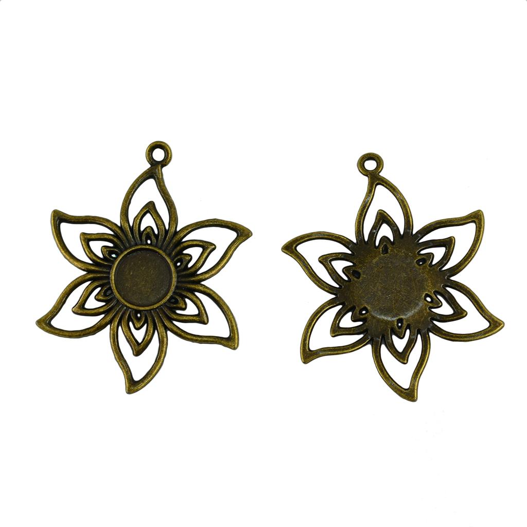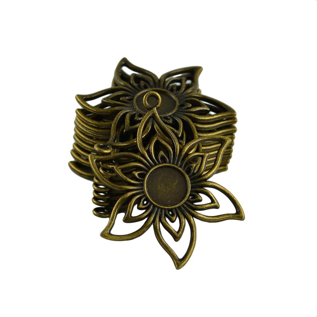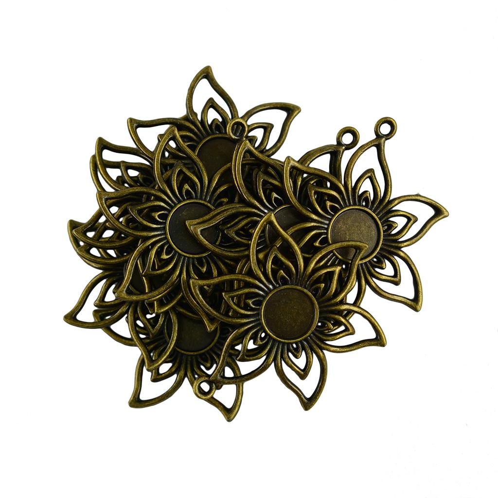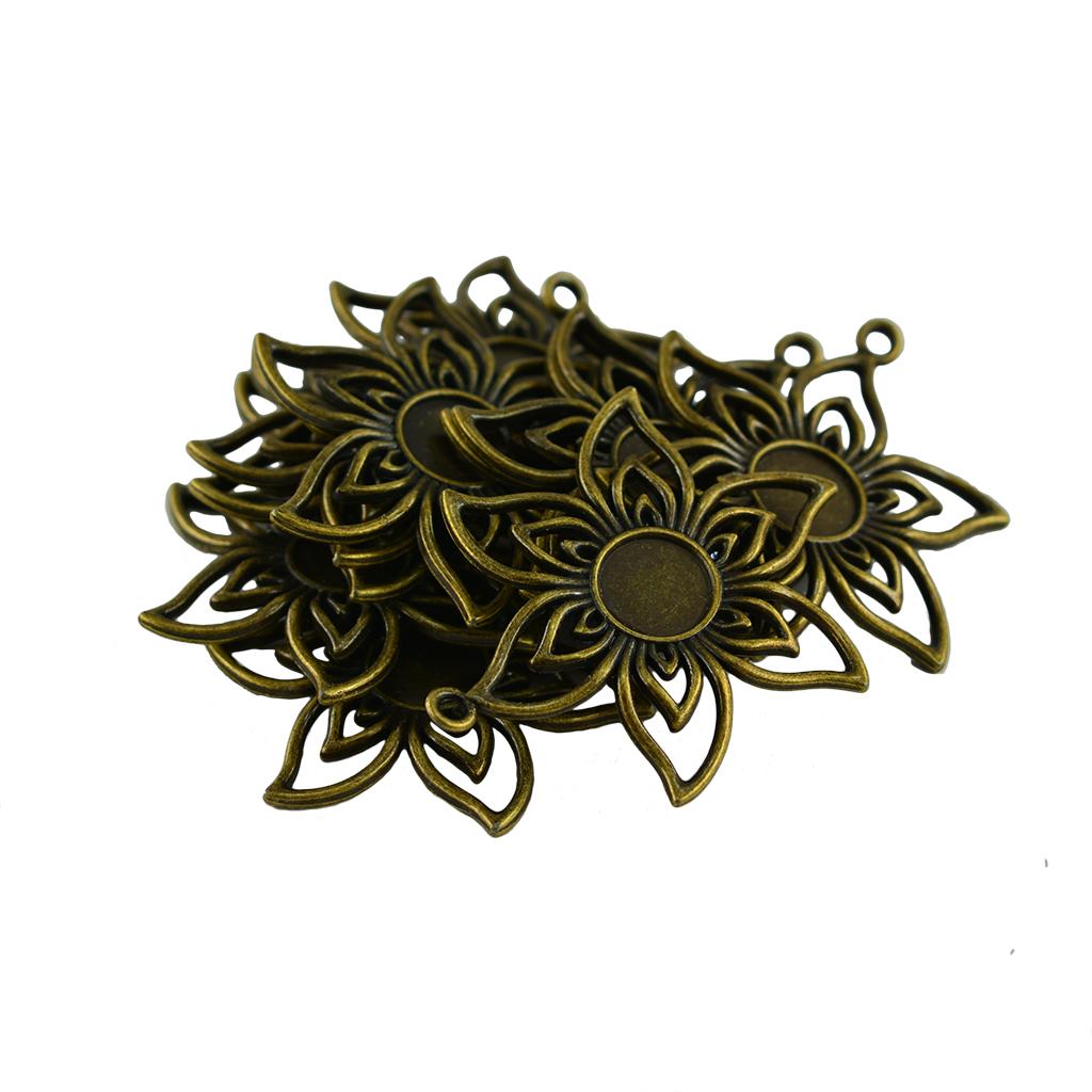 A package of 10 x Filigree Flower Pendant 10mm Cabochon Bezel Settings DIY Charms Connector
