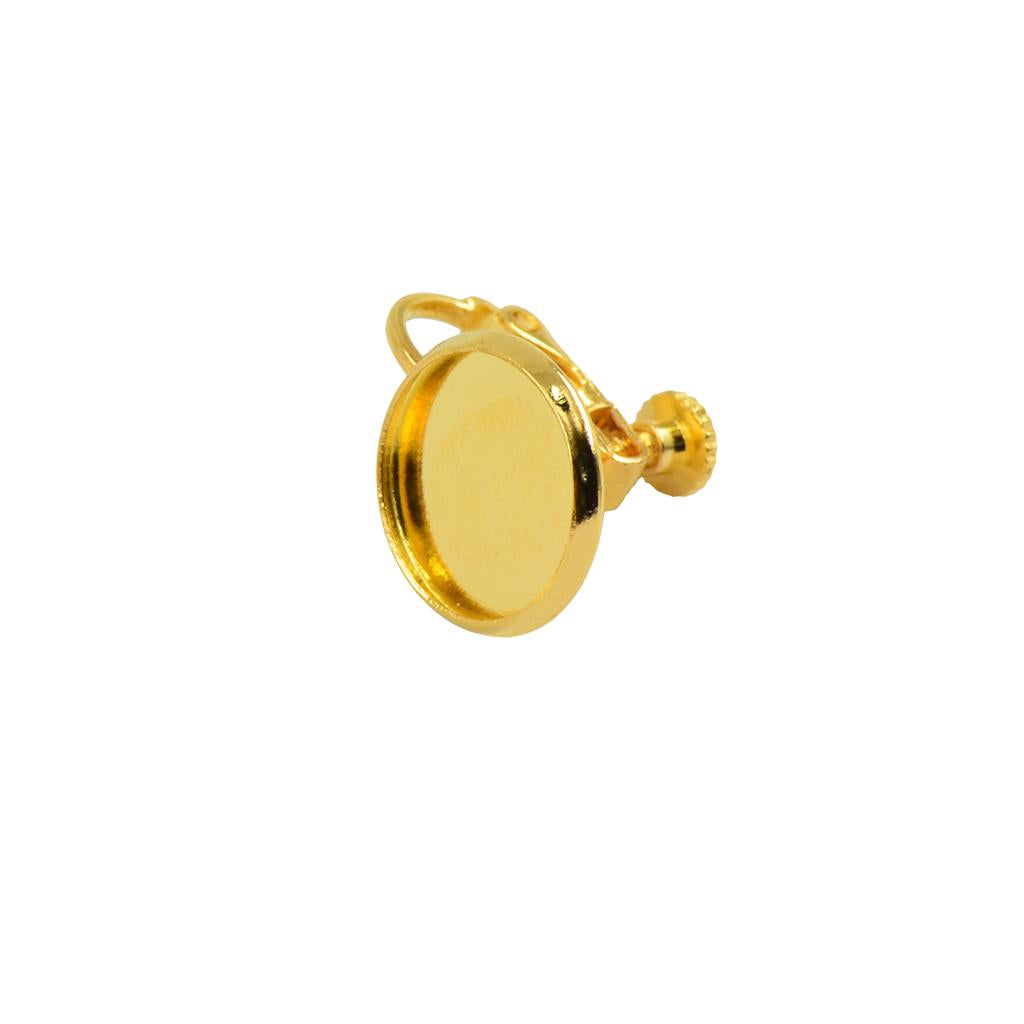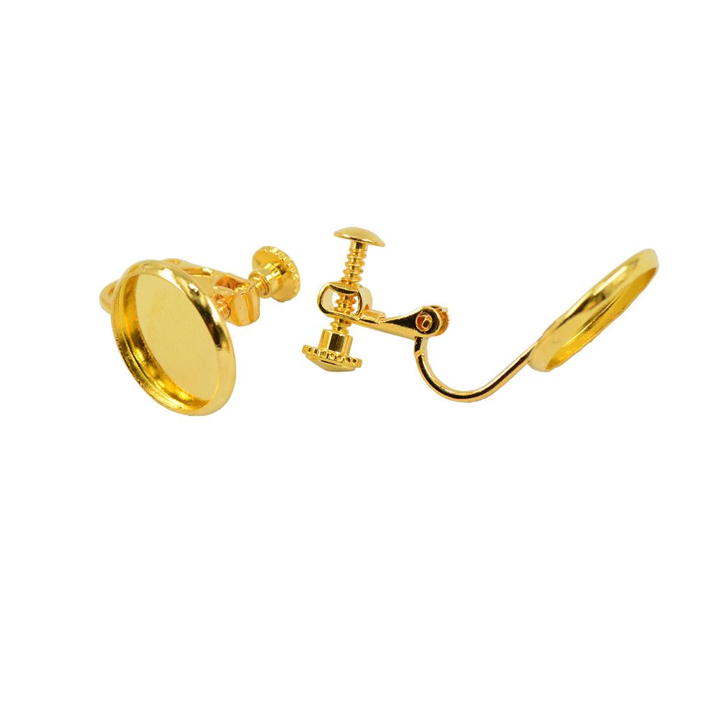 Non pieceing adjustable screw earring clip with 12mm blank round bezel cabochon setting.