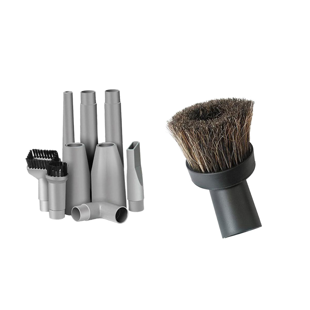 3 kind of brushes: 1pcs flat mouth brush,1pcs round mouth brush and 1pcs soft horsehair brush; flat mouth brush can be used to clean the dust in the fabric sofa and bedding; round mouth brush can be used to clean the dust in the surface of electric appliances, for example, the computer keyboard, horsehair brush for a wide variety of dry pick up tasks such as cleaning dirt, sawdust, furniture, or venetian blinds.