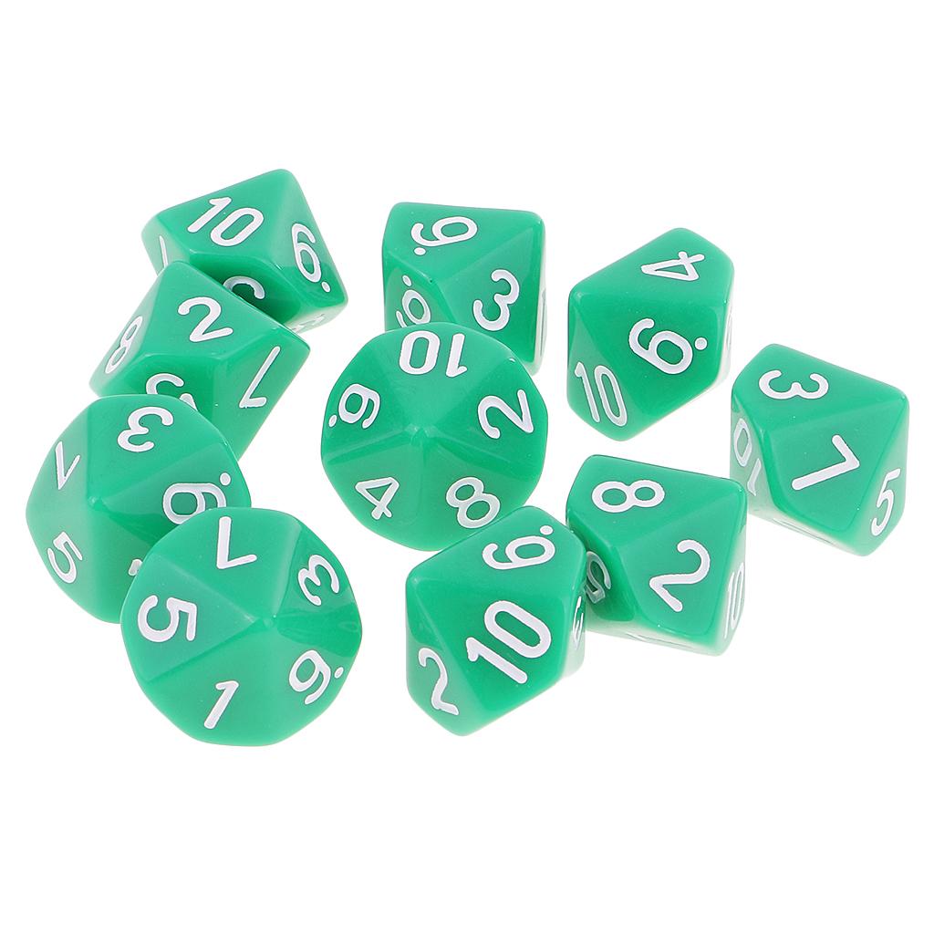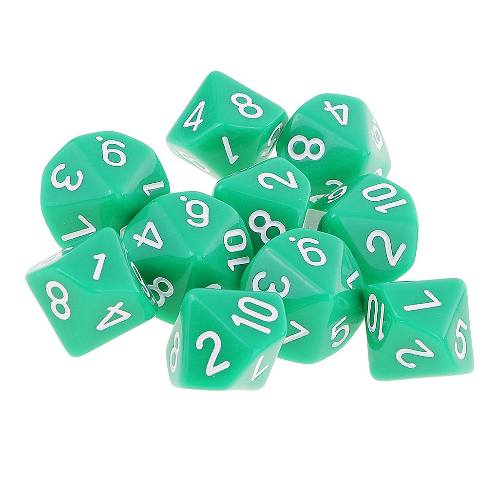 10 pieces 10 Sided Dice D10 Polyhedral Dice Acrylic for Dungeons and Dragons Party Table Games Green