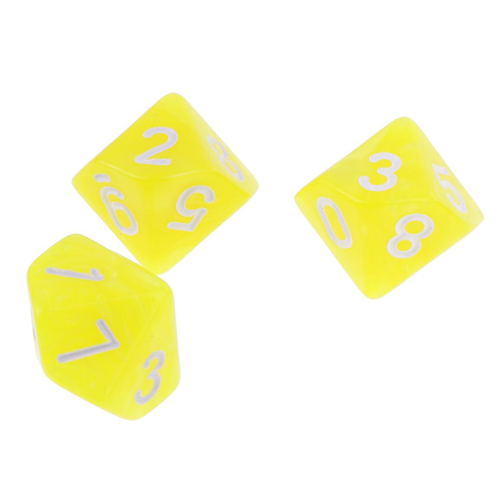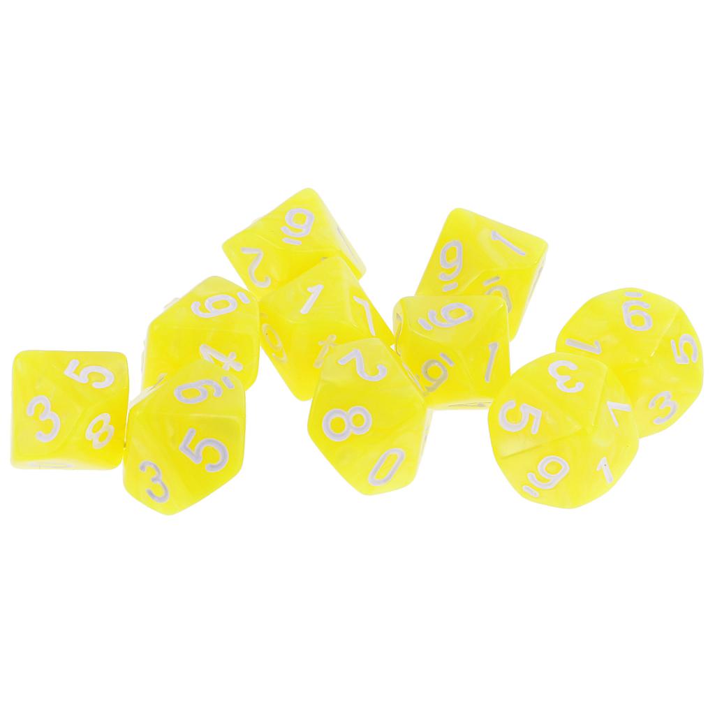 10 pieces 10 Sided Dice D10 Polyhedral Dice for Dungeons and Dragons Party Table Games Yellow