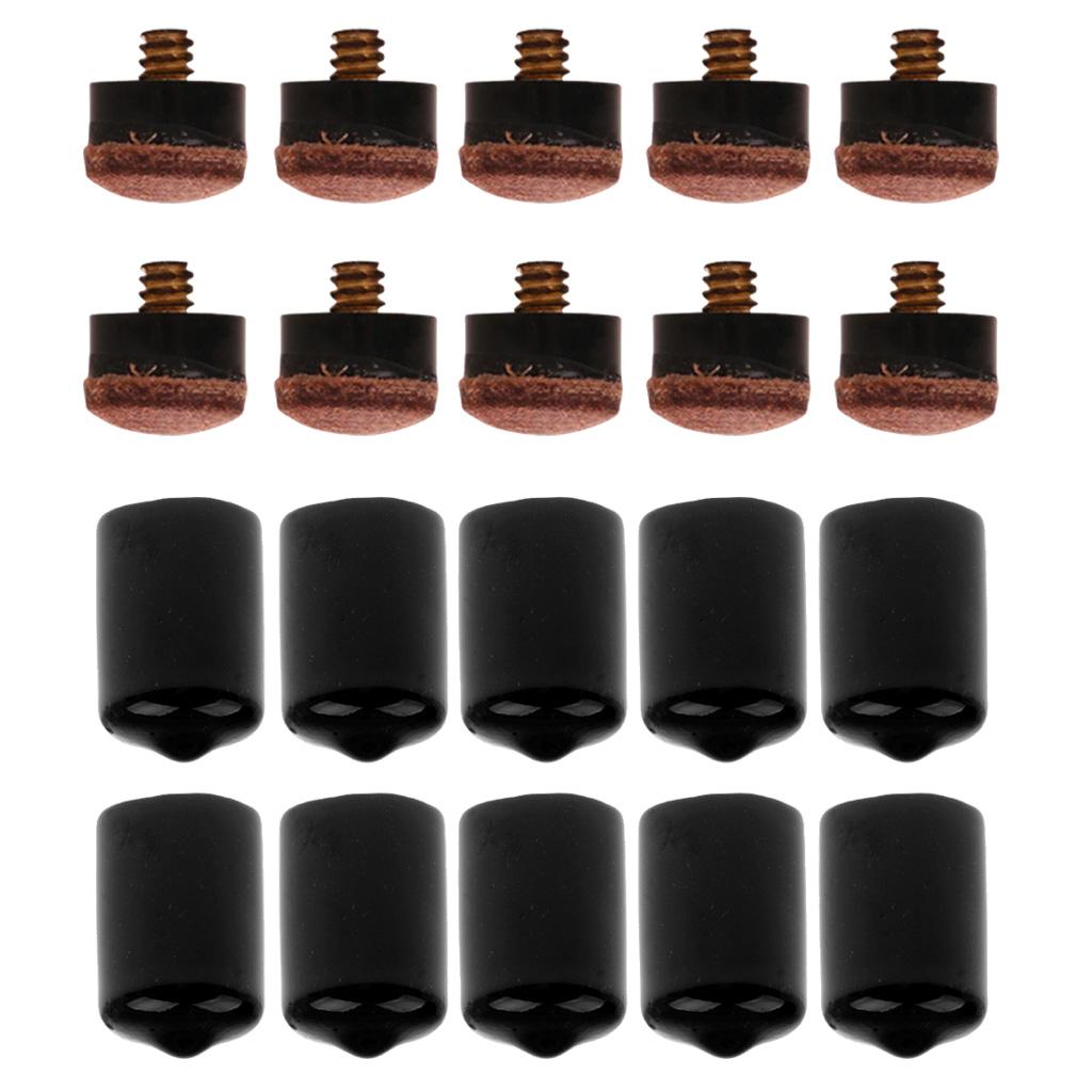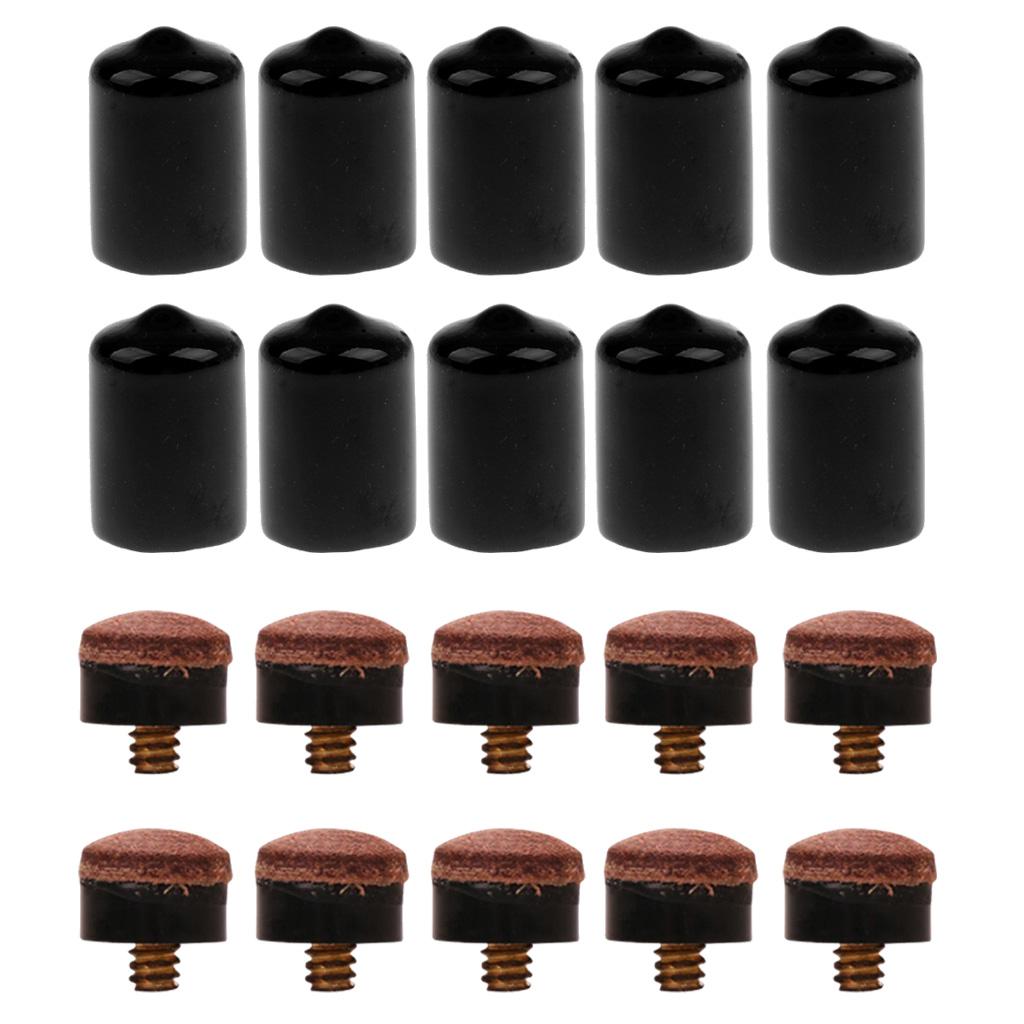 10 Pieces 12mm screw-on pool cue tips with 10 pieces cue tip protectors