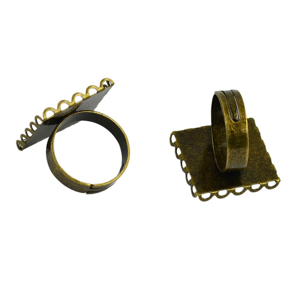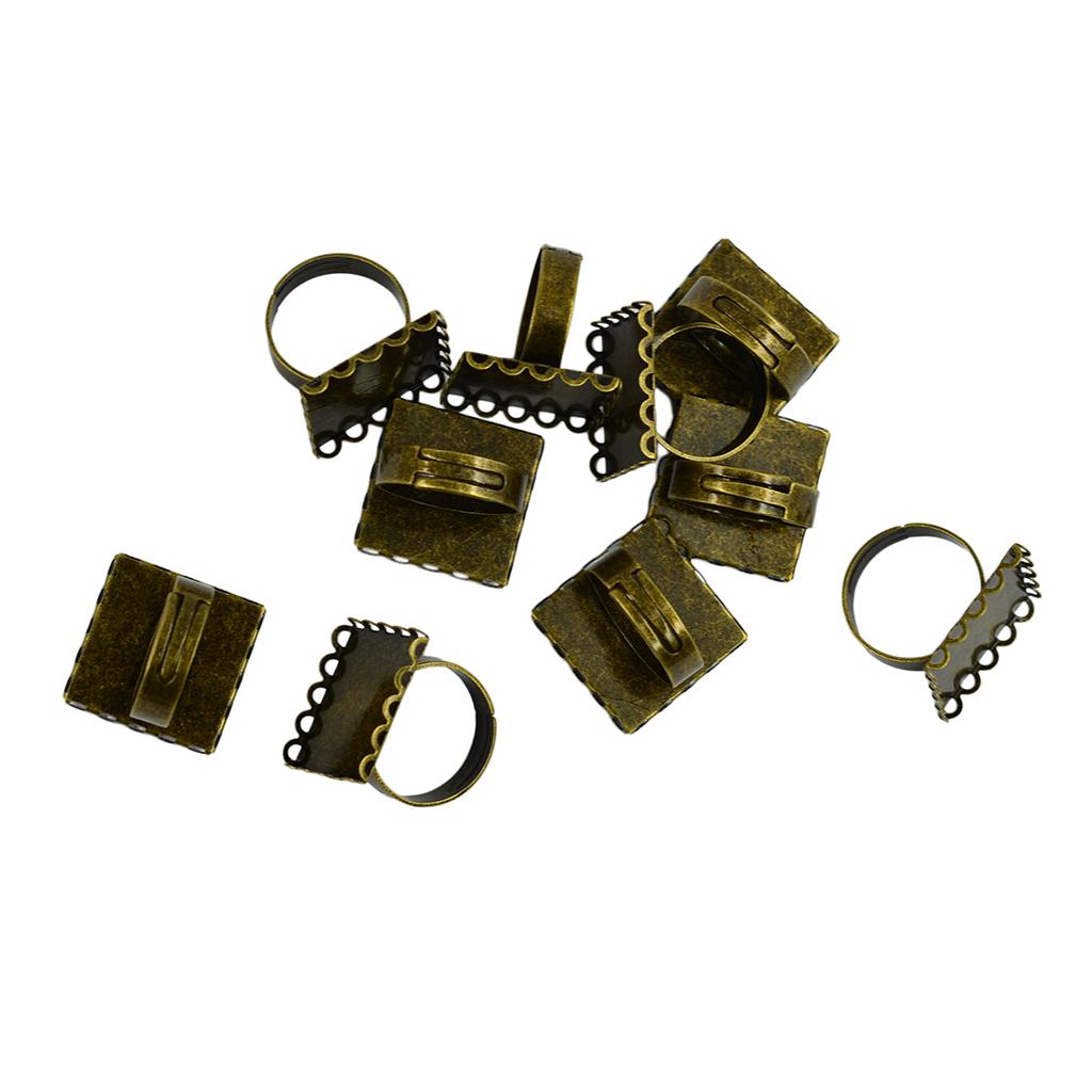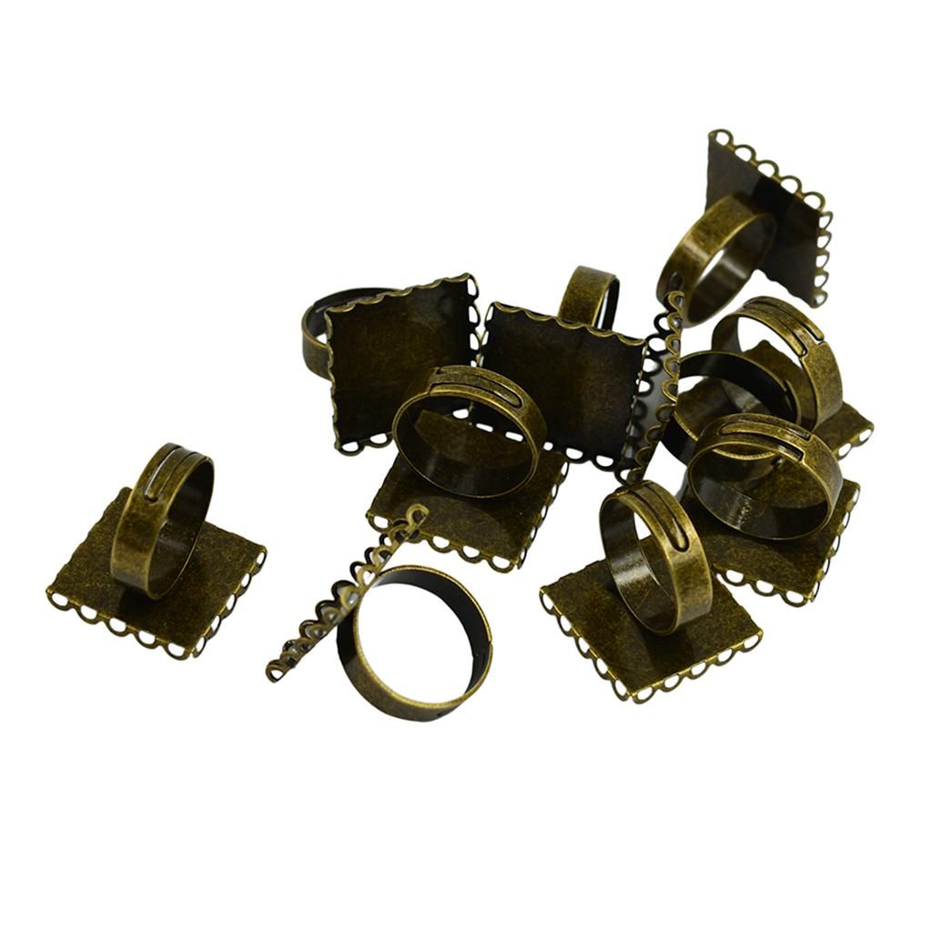 10 Pieces 20 mm Square Adjustable Flower Blank Cabochon Bezel Cup Base DIY Ring Findings Bronze