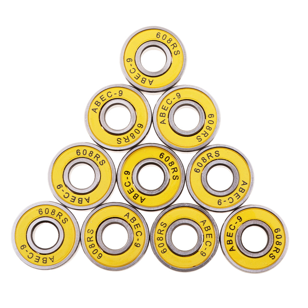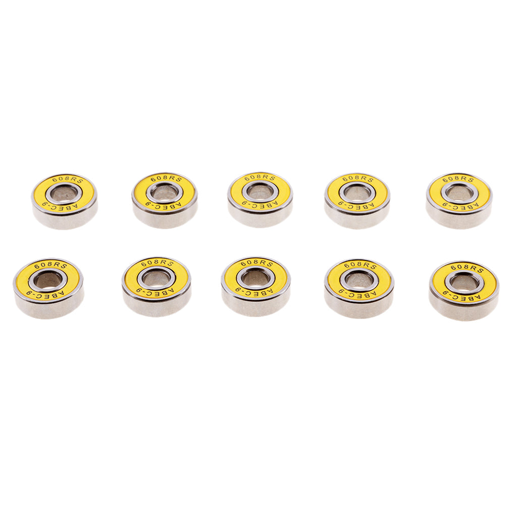 10 Pieces ABEC-9 608RS Roller Skate Wheel Bearings Seal Ball Bearings Yellow