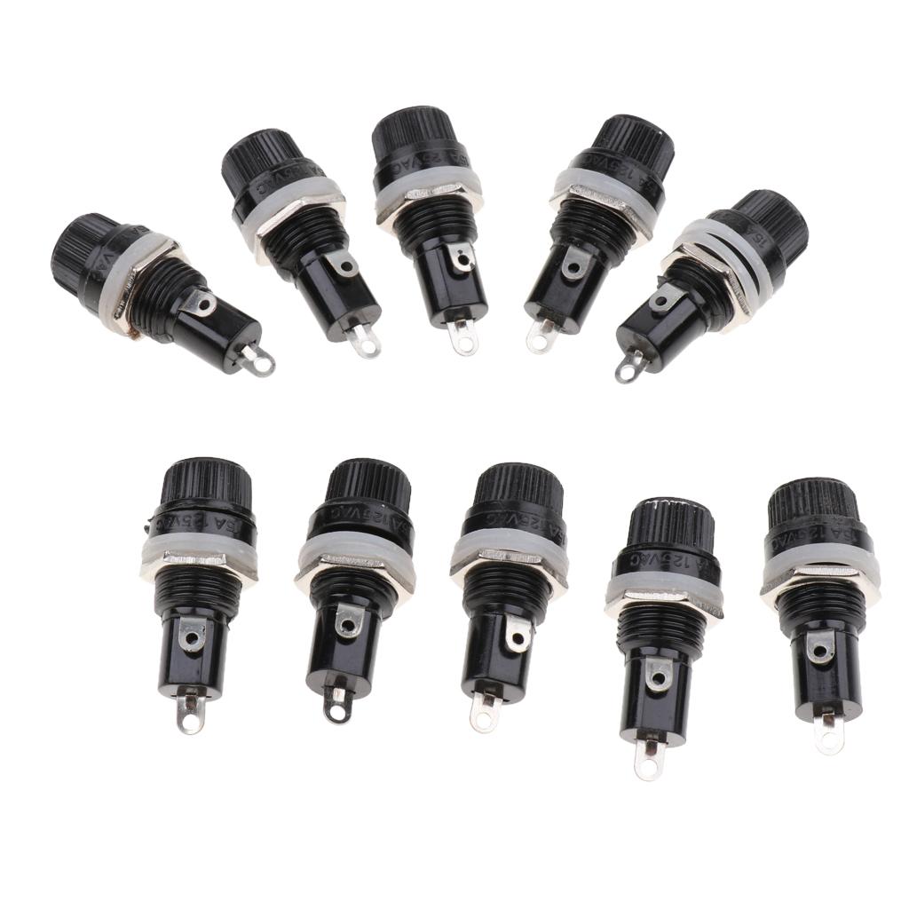 10 Pieces AC 125V/15A 250V/10A 12mm Thread Screw Cap Panel Mounted Fuse Holders