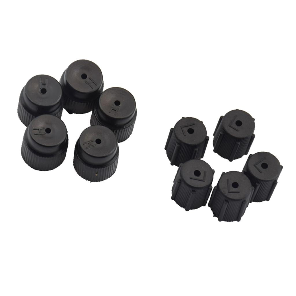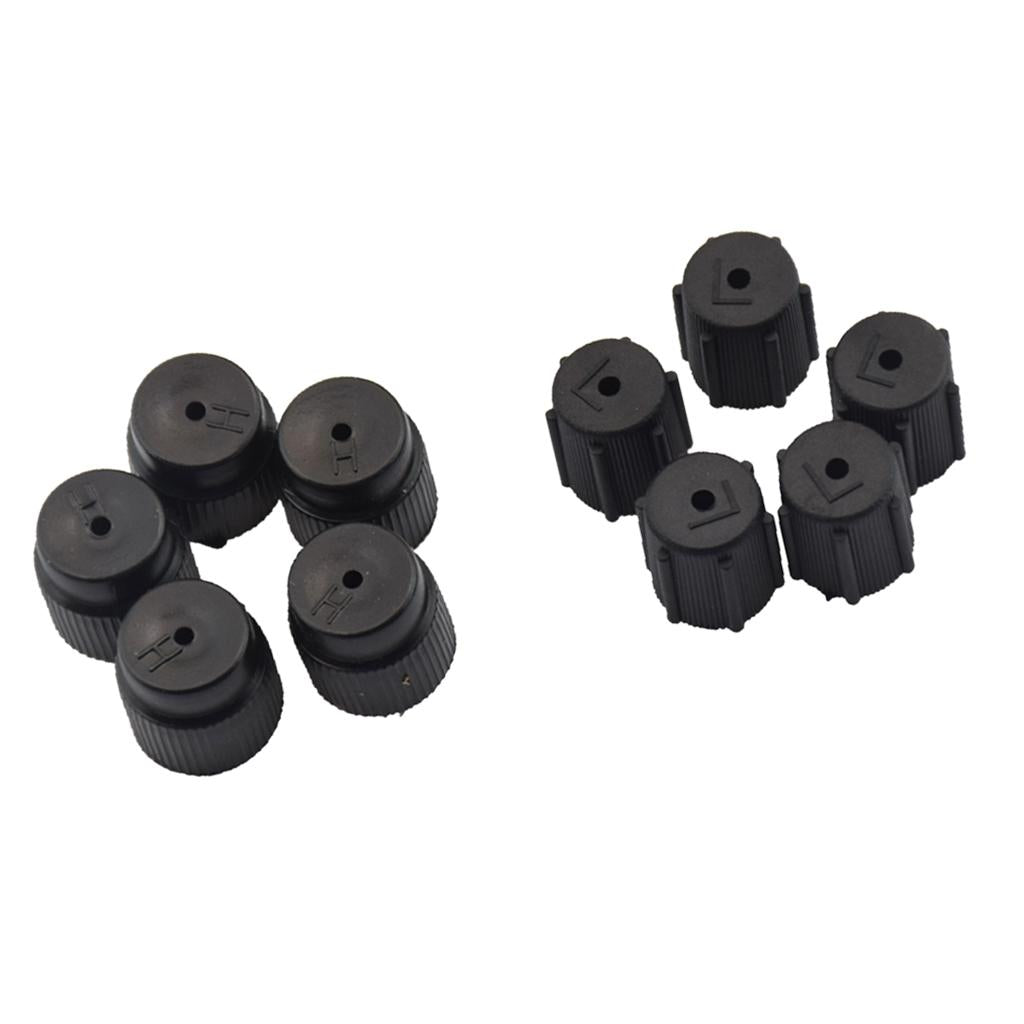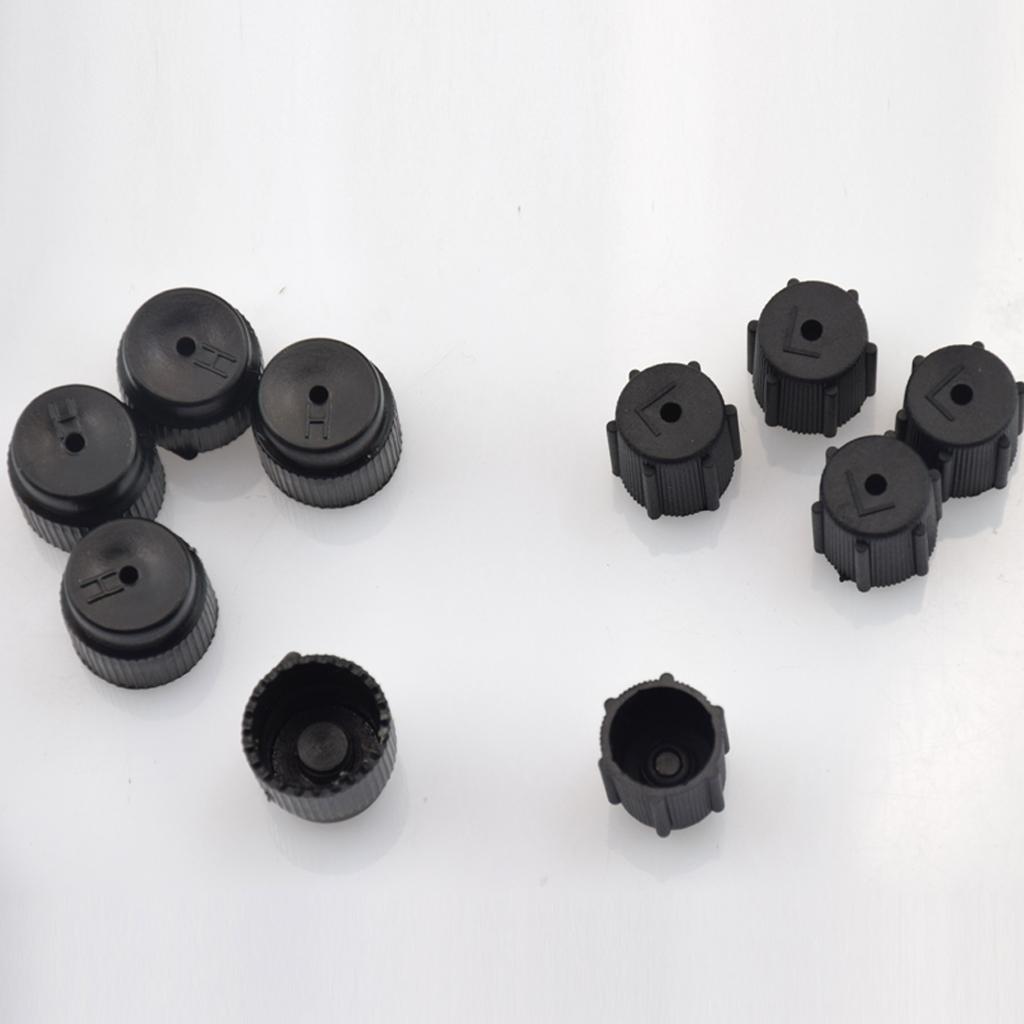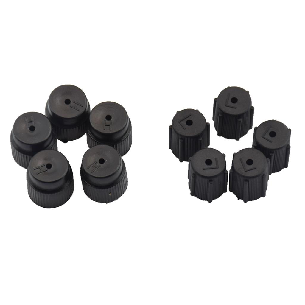 5 Caps Black High Side Port 16 mm and 5 caps Black Low Side Port 13mm.