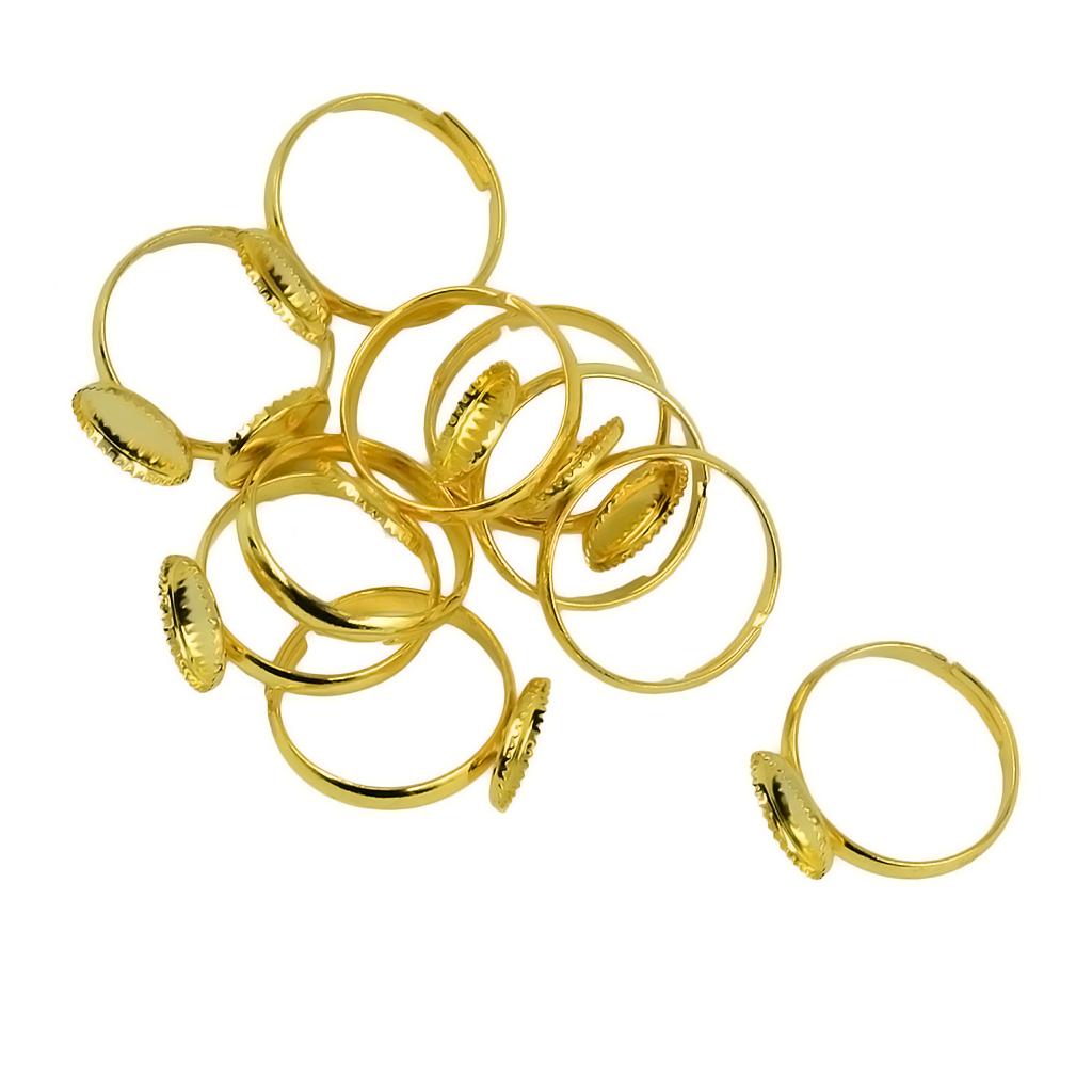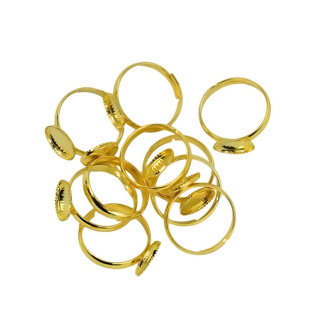 10 Pieces Adjustable Blank 10mm Bezel Cabochon Ring DIY Making Gold