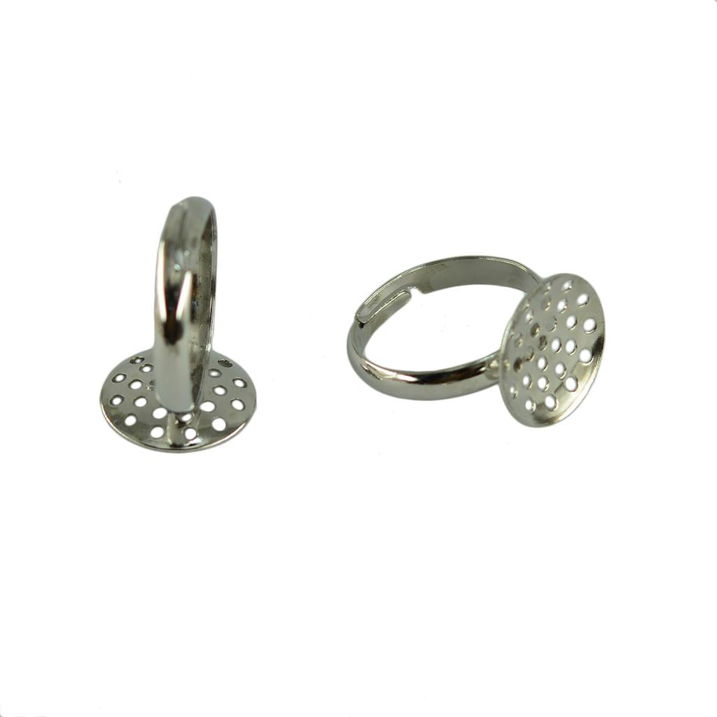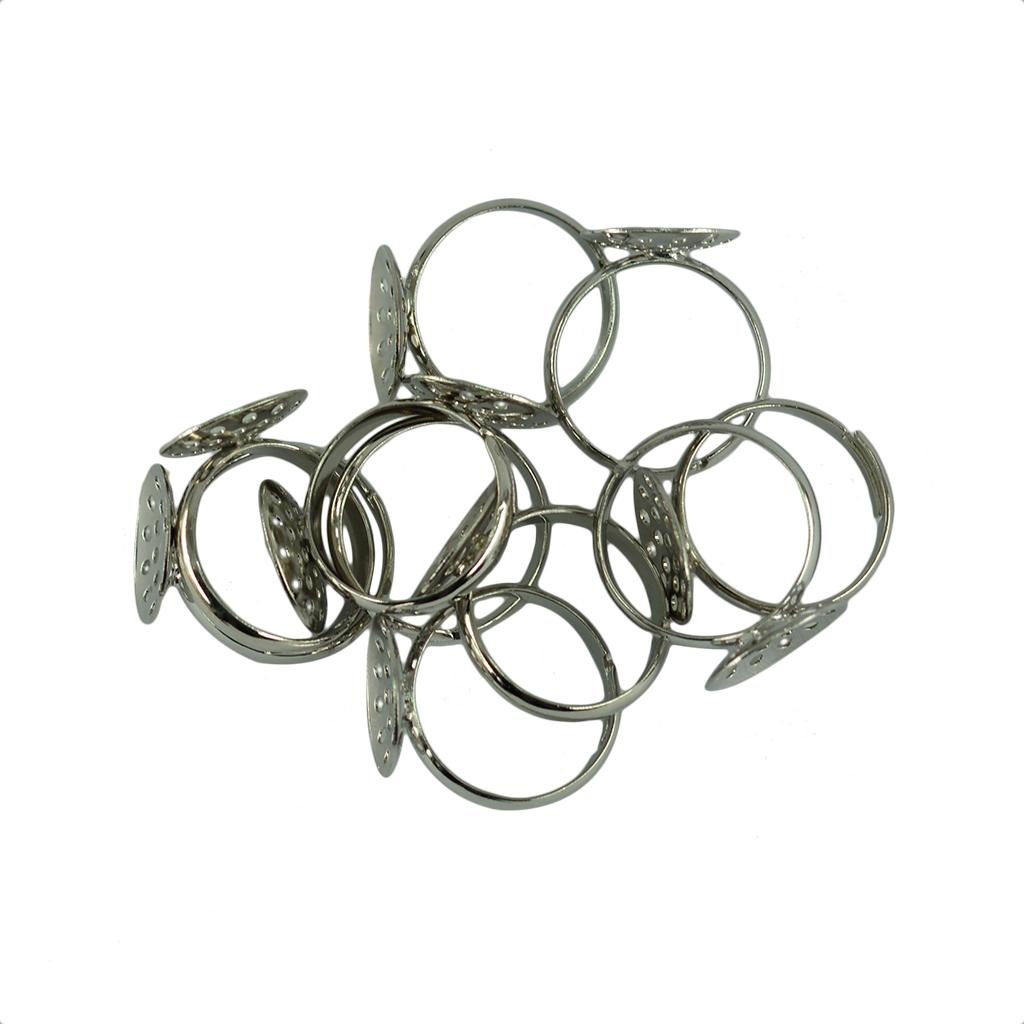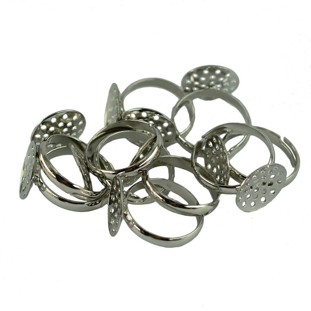 10 Pieces Adjustable Brass Ring DIY Blank Settings Glue On Tray 14mm Silver