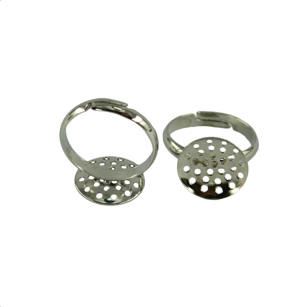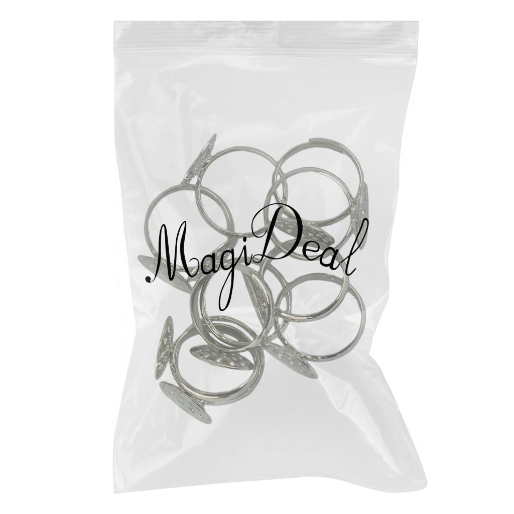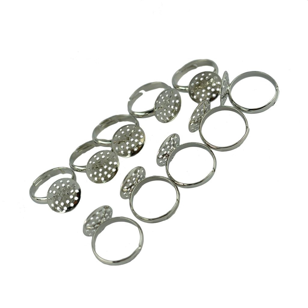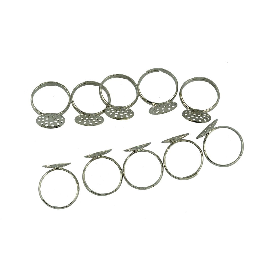 10 Pieces Adjustable Brass Ring DIY Blank Settings Glue On Tray 14mm Silver