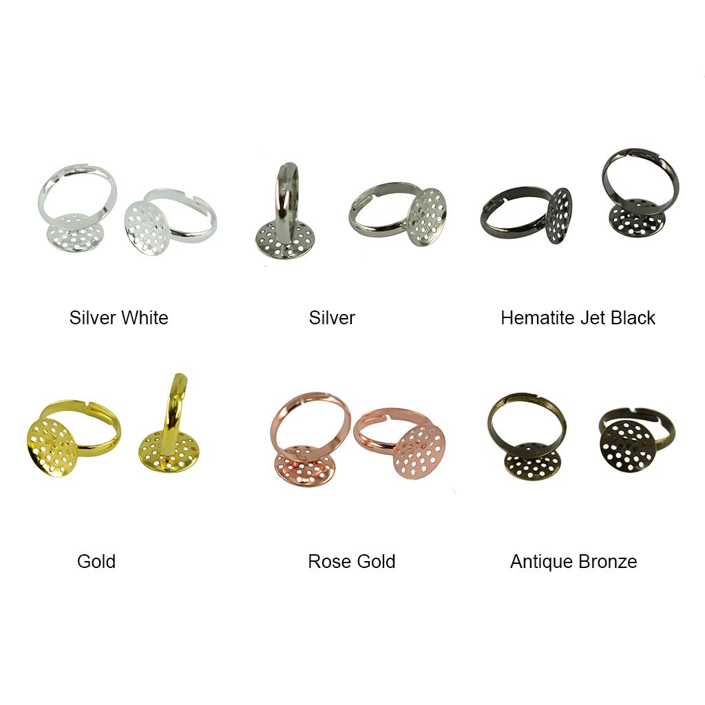 This adjustable ring features a blank round bezel base, Gluing cabochon, sewing charms and more.