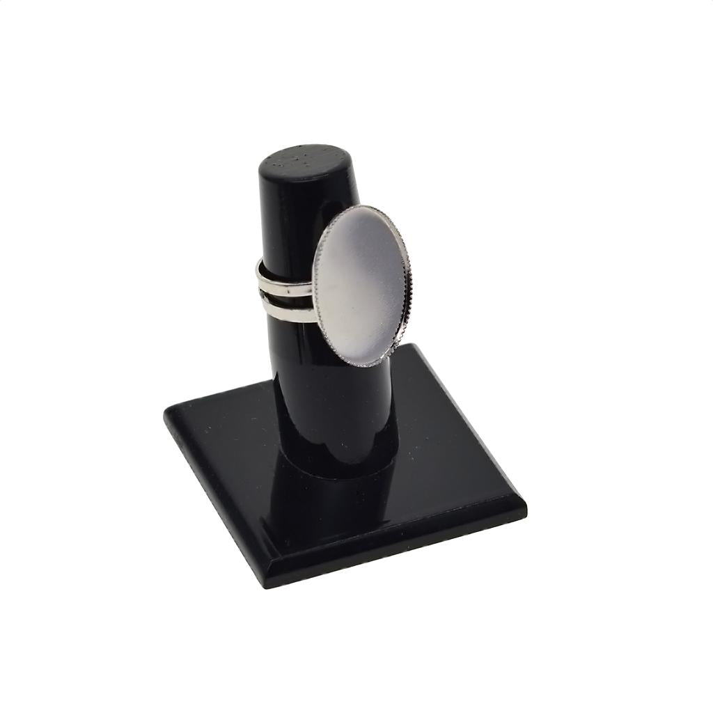 The cabochon frame measures approximately 25 x 18 mm in diameter and the ring size could be adjustable.