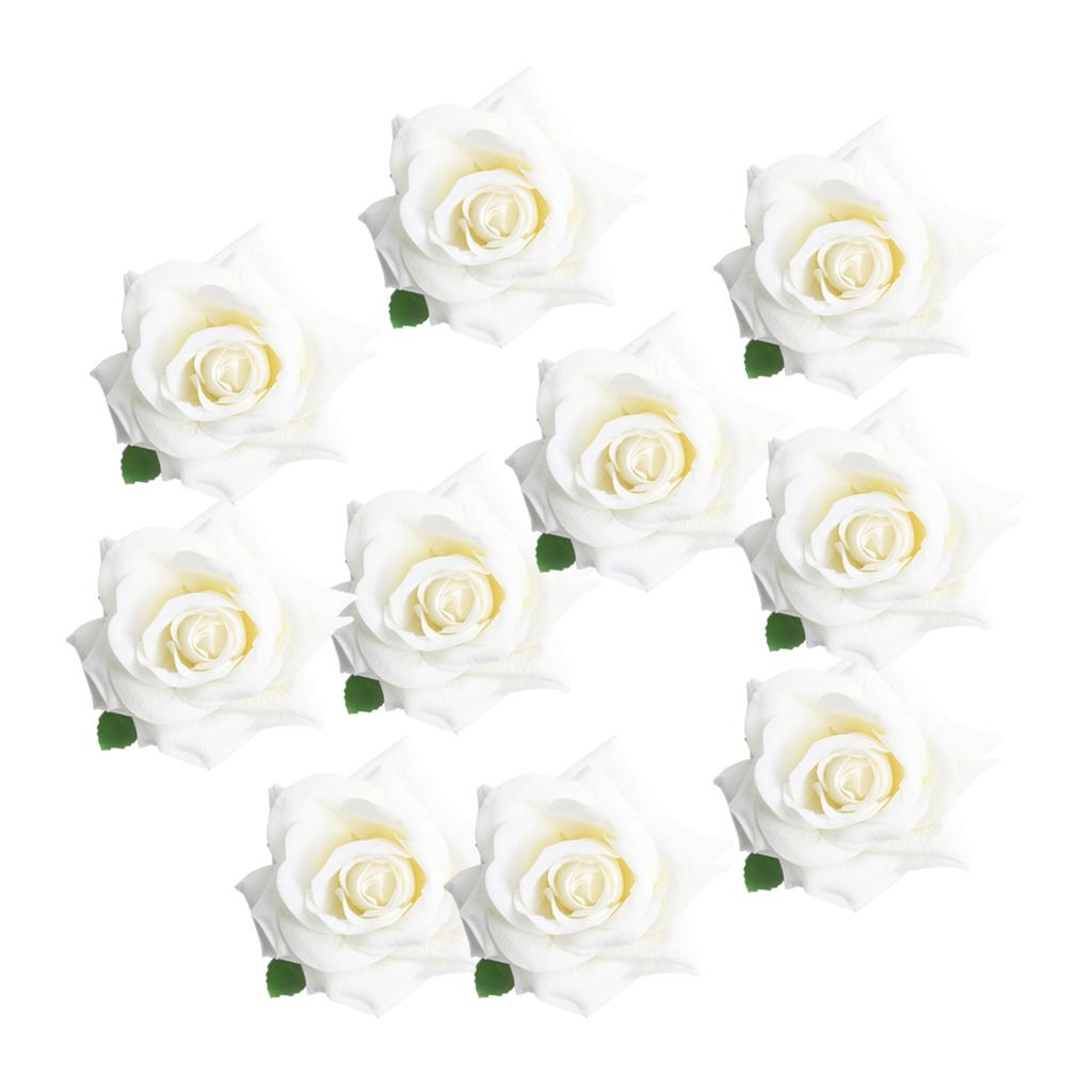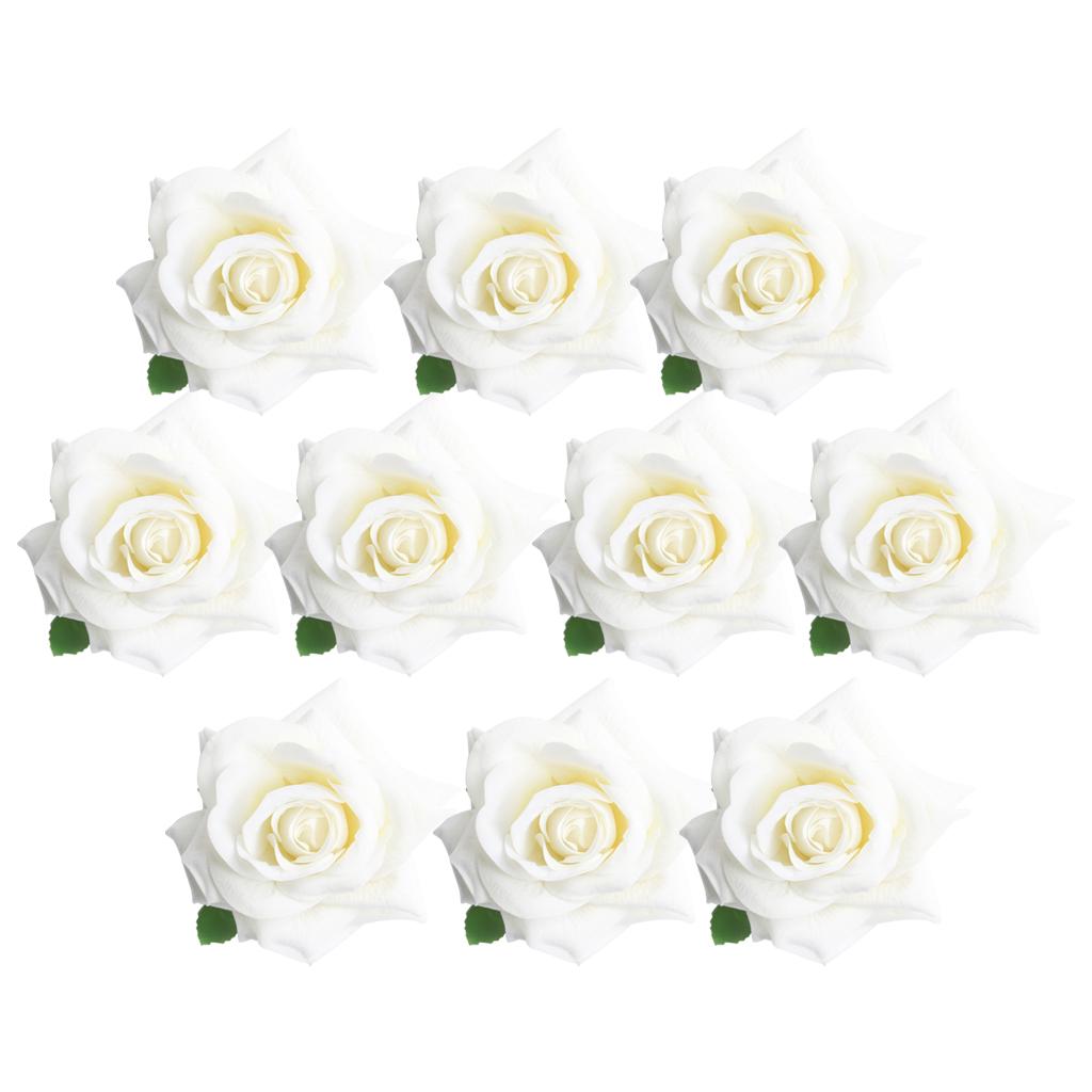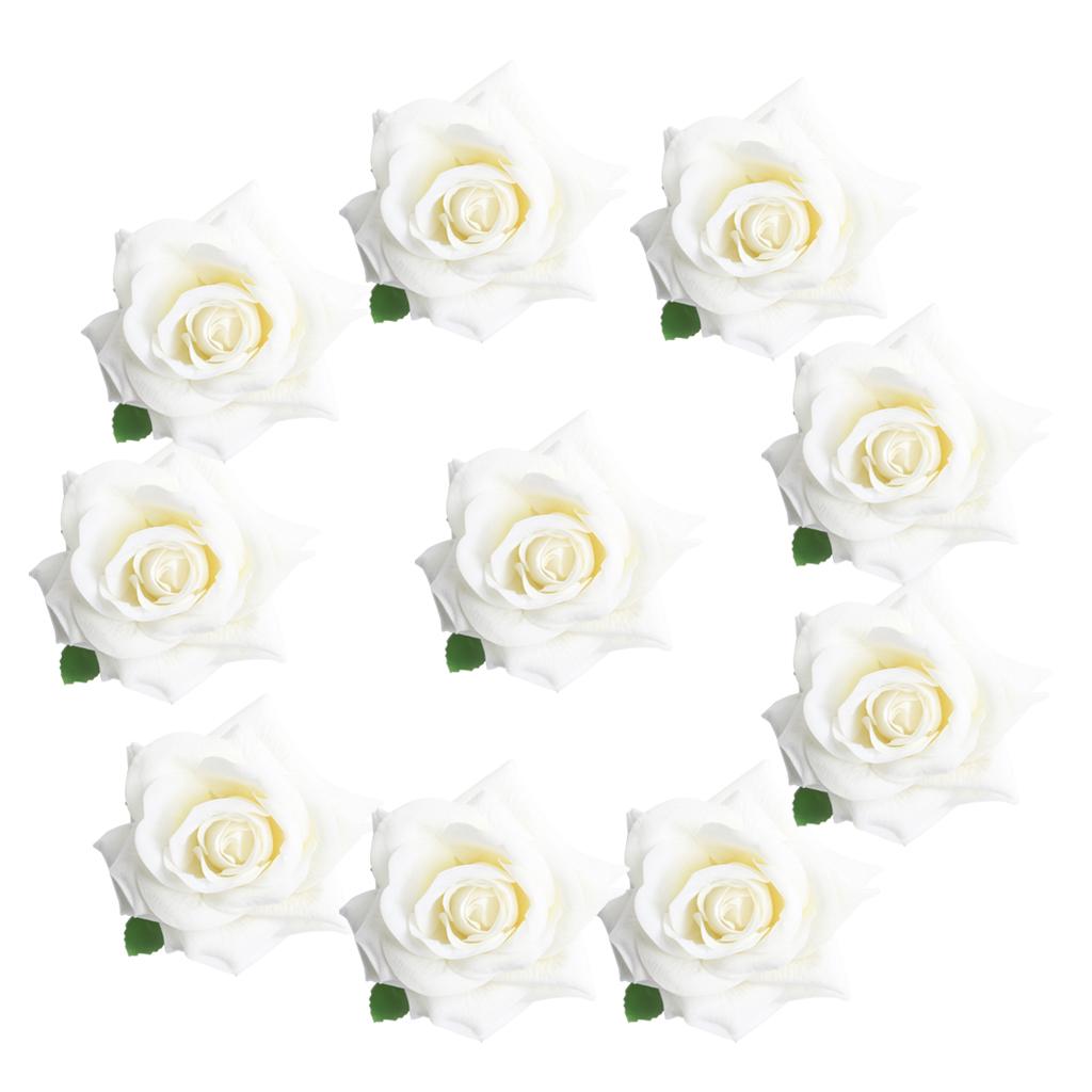 10 Pieces Artificial Flannel Rose Flower Head Buds 10.5cm cream