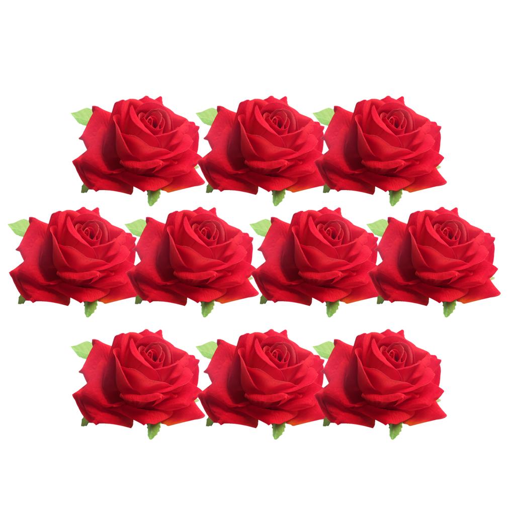 10 Pieces Artificial Flannel Rose Flower Head Buds 10.5cm tangerine