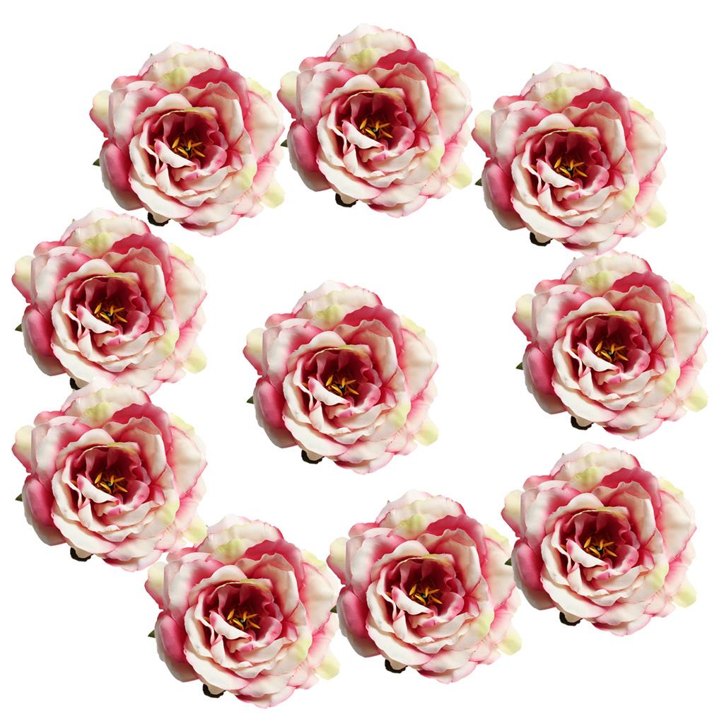 10 Pieces Artificial Peony Silk Flower Head DIY Accessories rose red