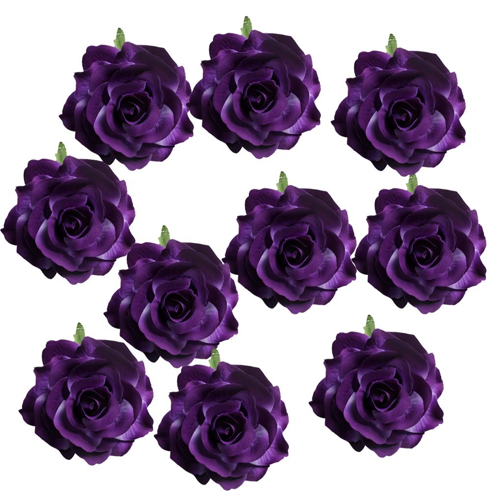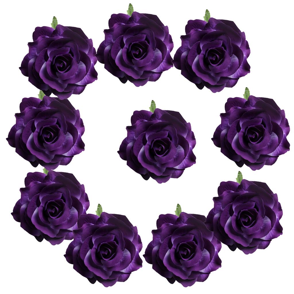 10 Pieces Artificial Silk Rose Buds Flower Head DIY Accessories dark purple