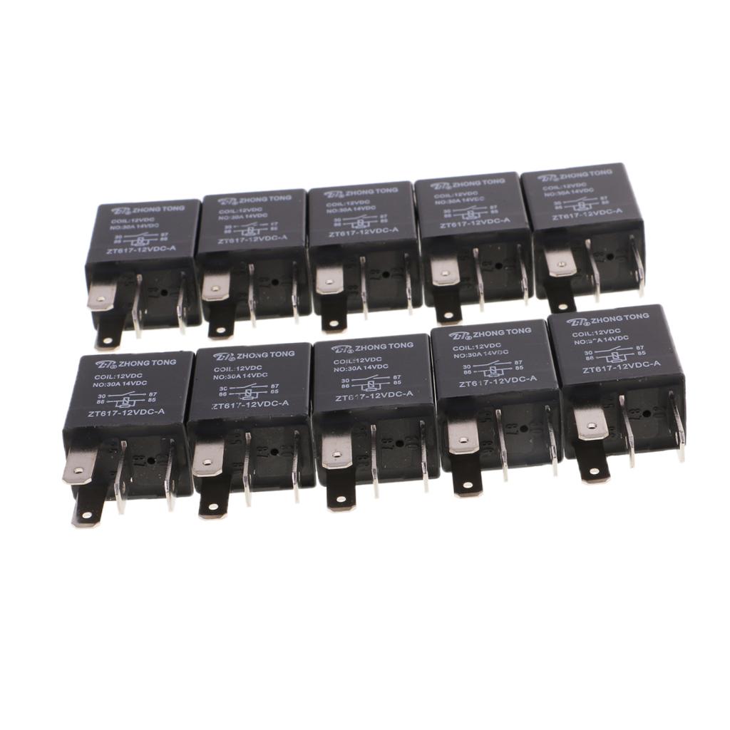10 Pieces 12 Volt 30 amp 4-prong SPST relays