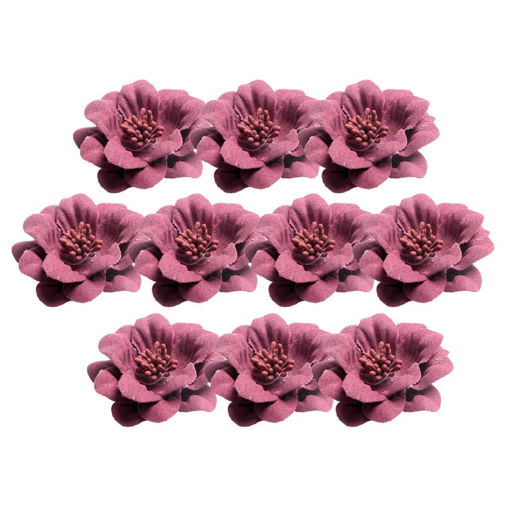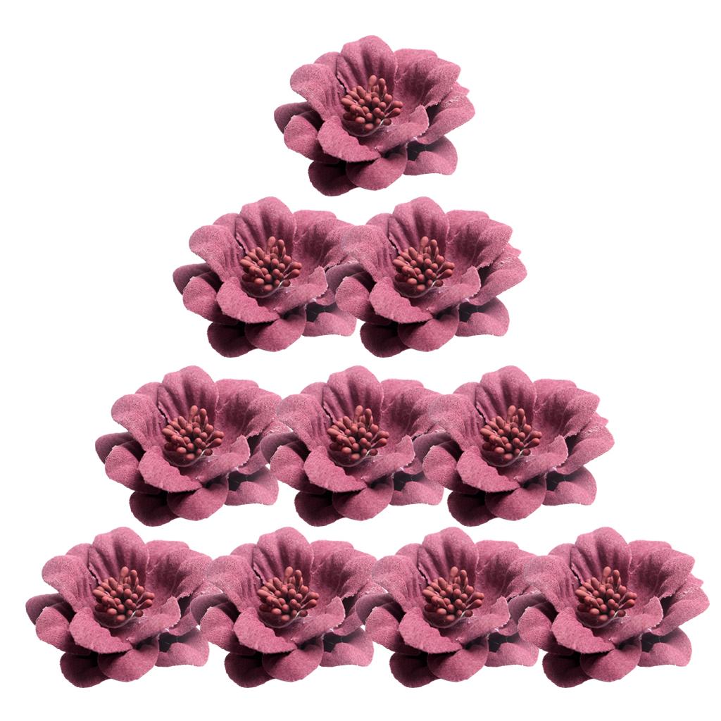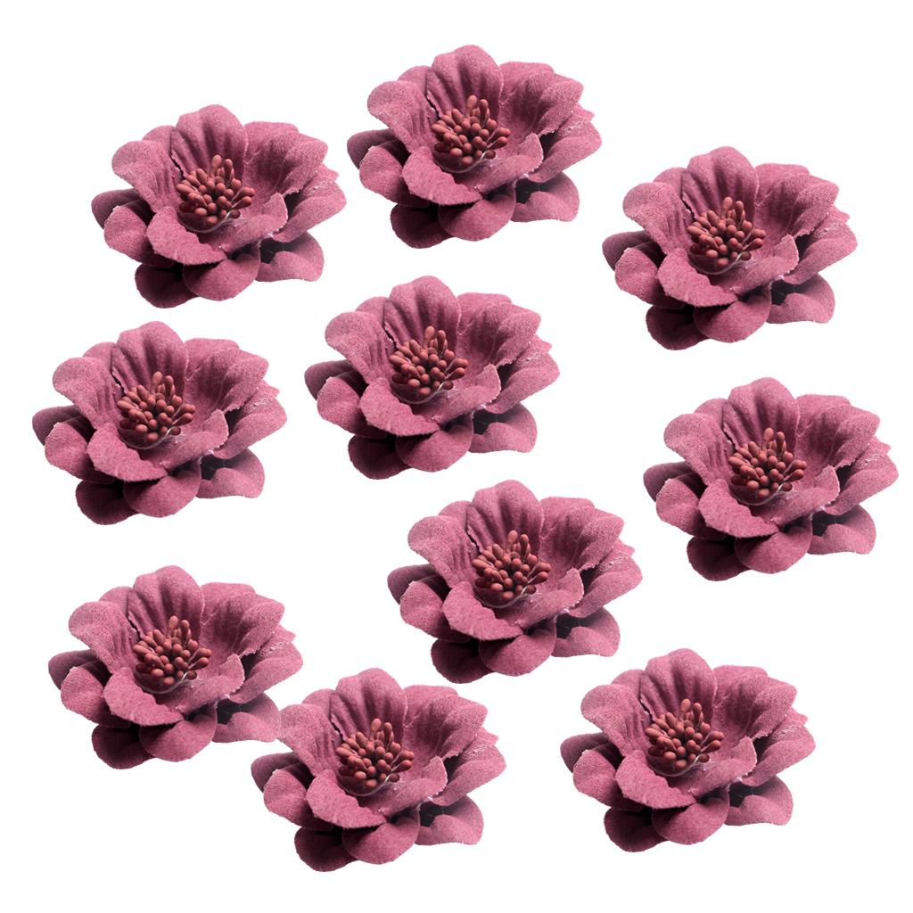 10 Pieces Camellia Flower Heads for DIY Hair Acessories 4.5cm Fuchsia