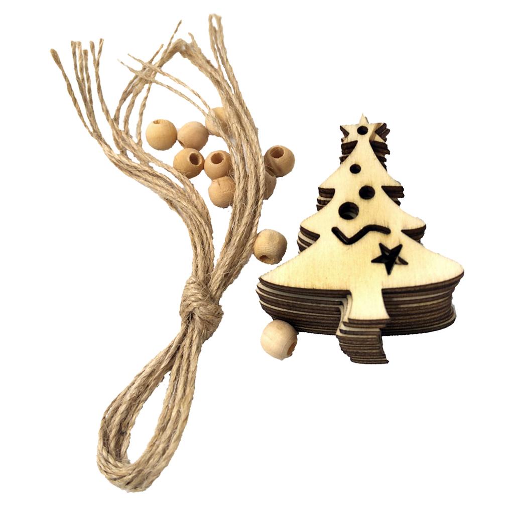 Wooden christmas tree shapes with string, cut from high quality wood.