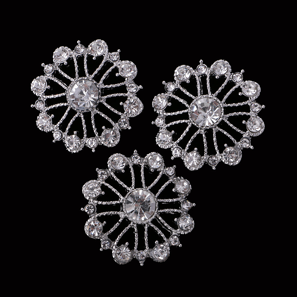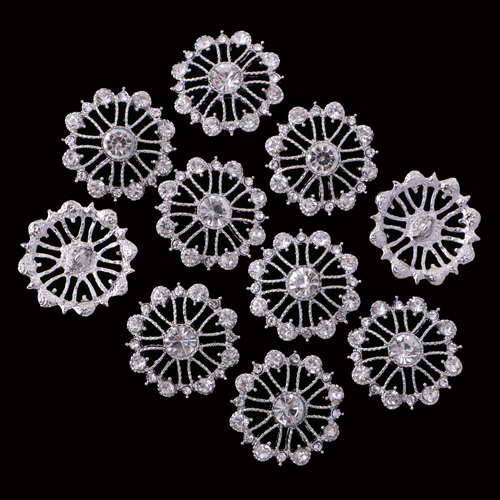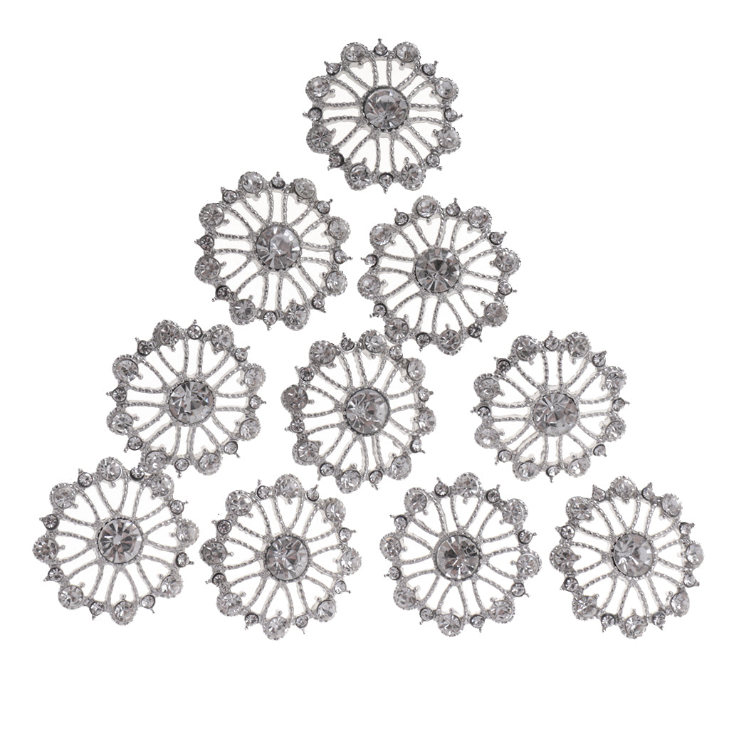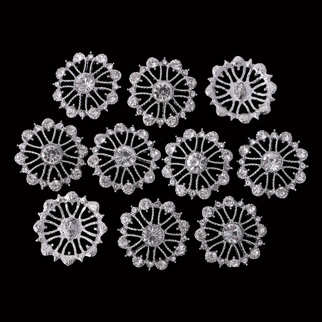 10 Pieces Crystal Rhinestone Shank Buttons for Sewing Craft Silver 30mm