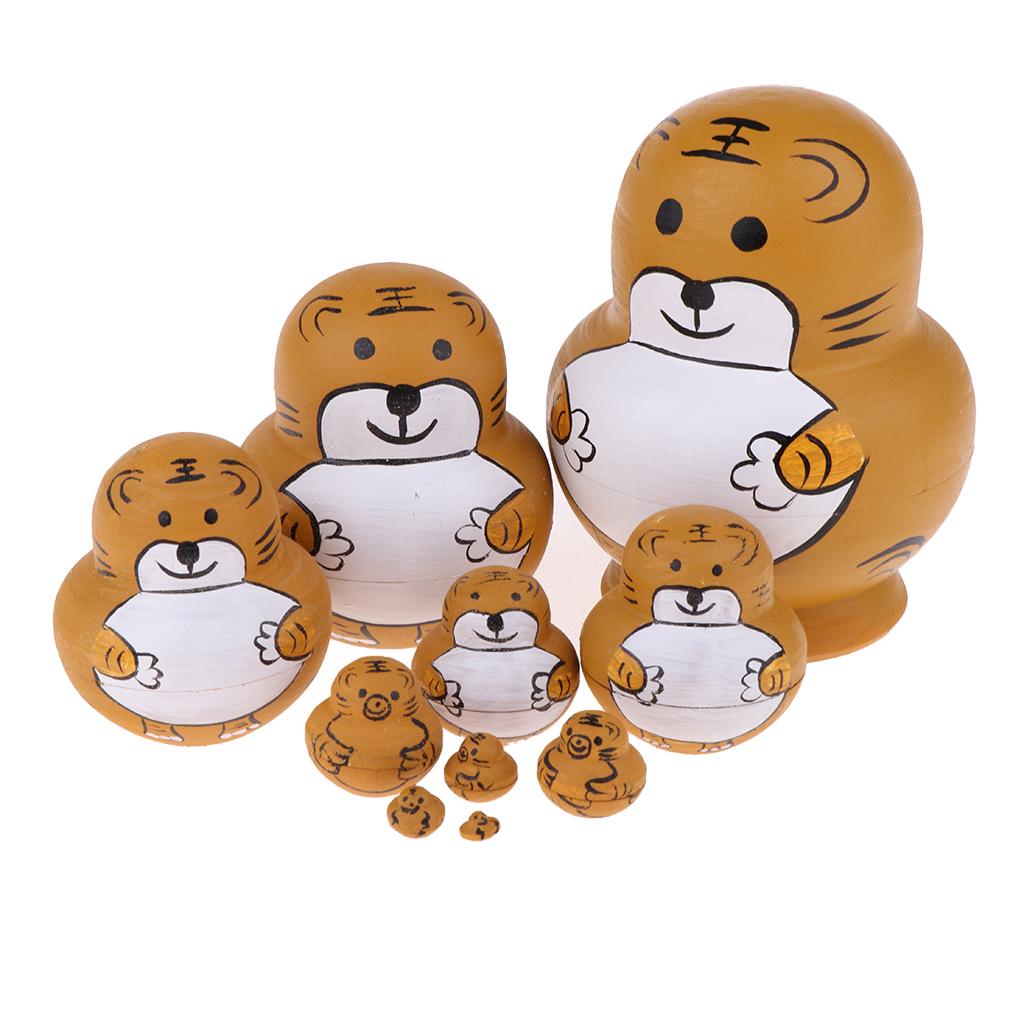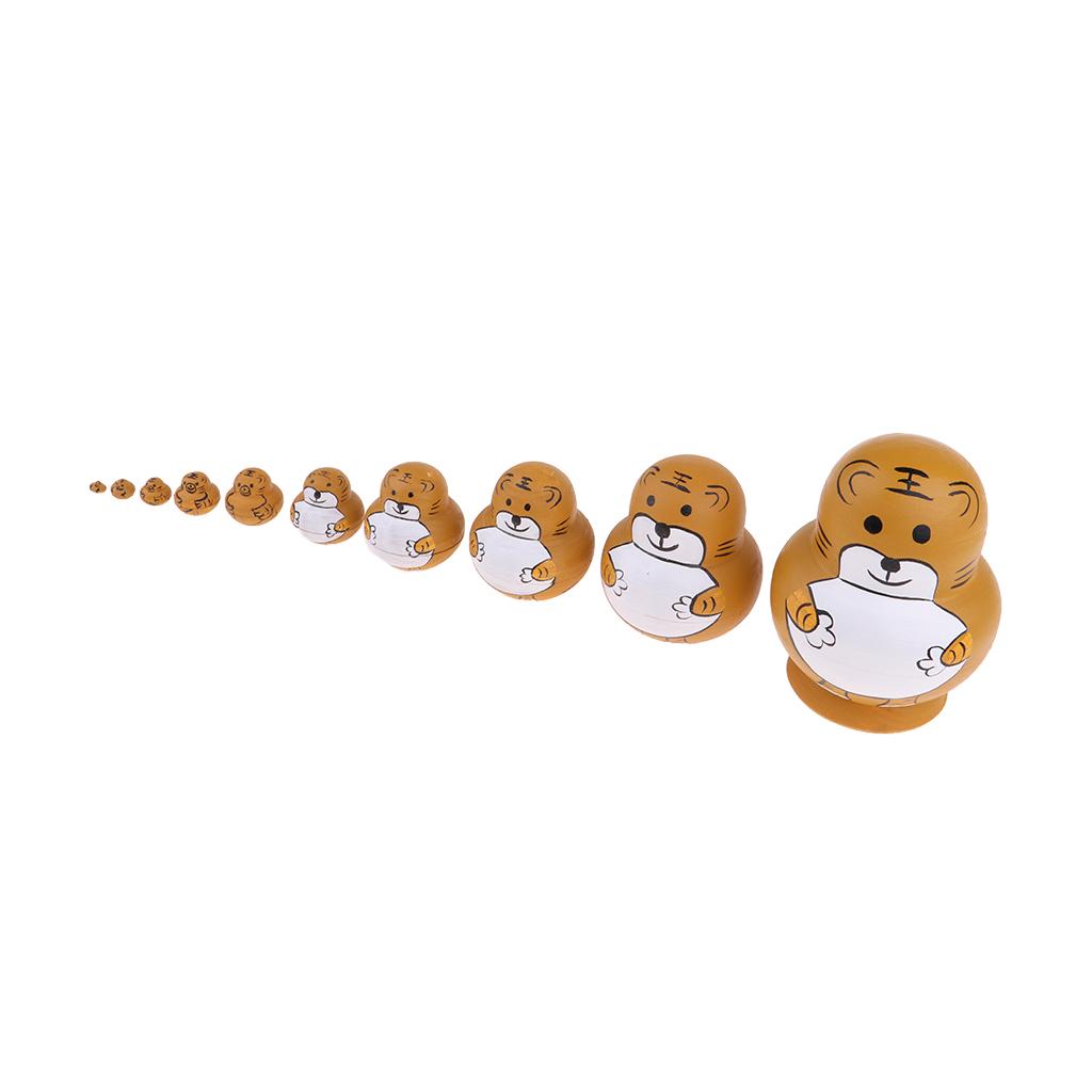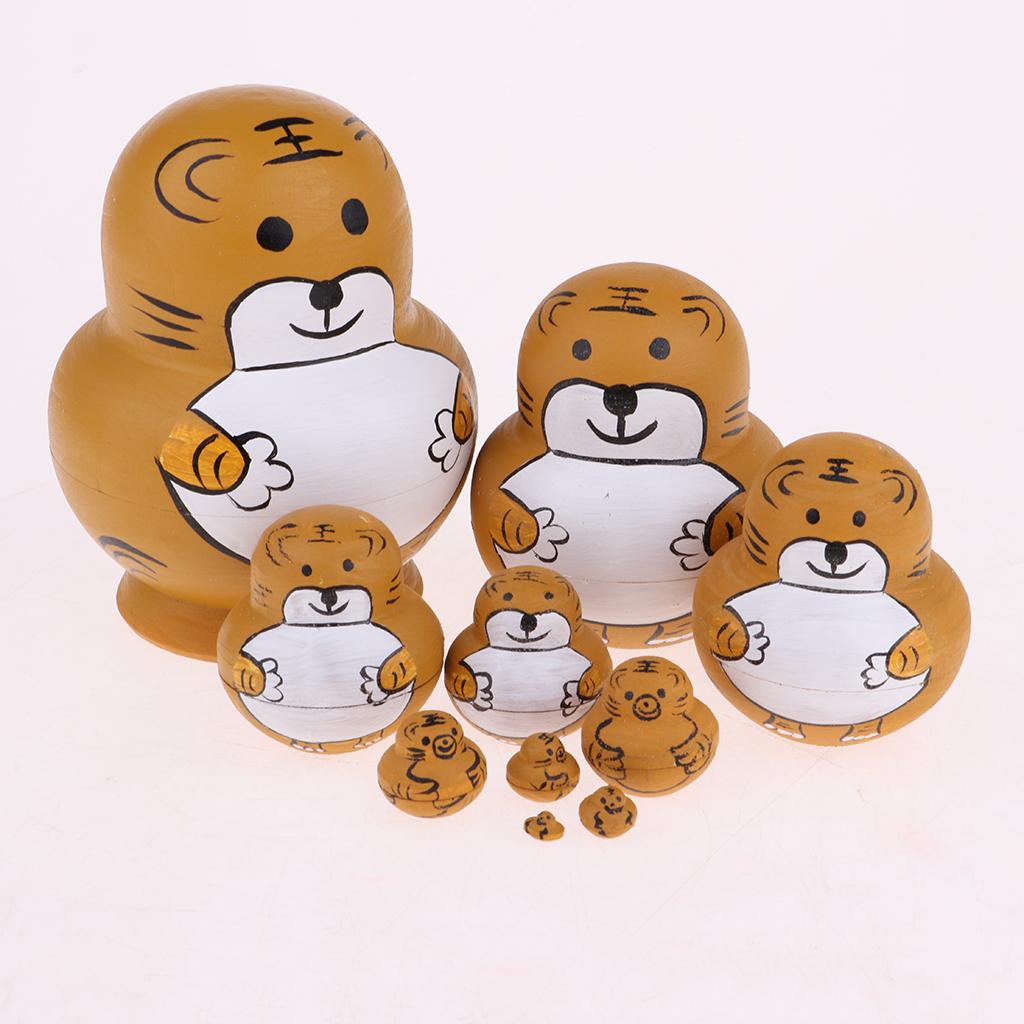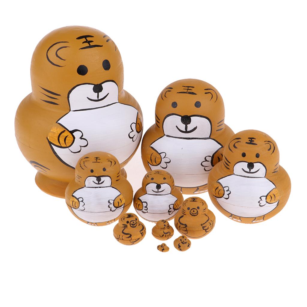 Handmade wooden 10pcs Russian nesting dolls - mini tigers babushka doll for kids DIY accessories toys