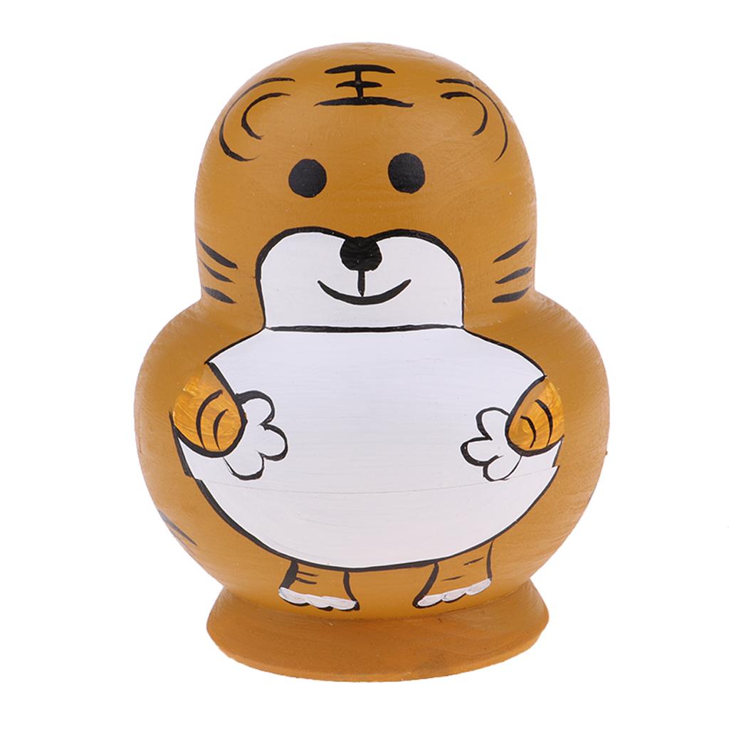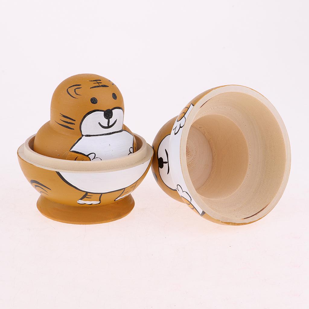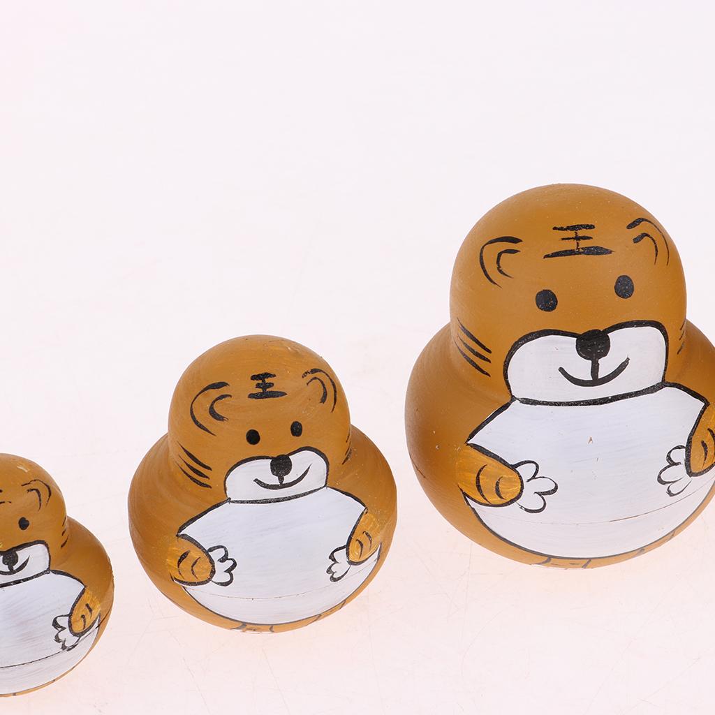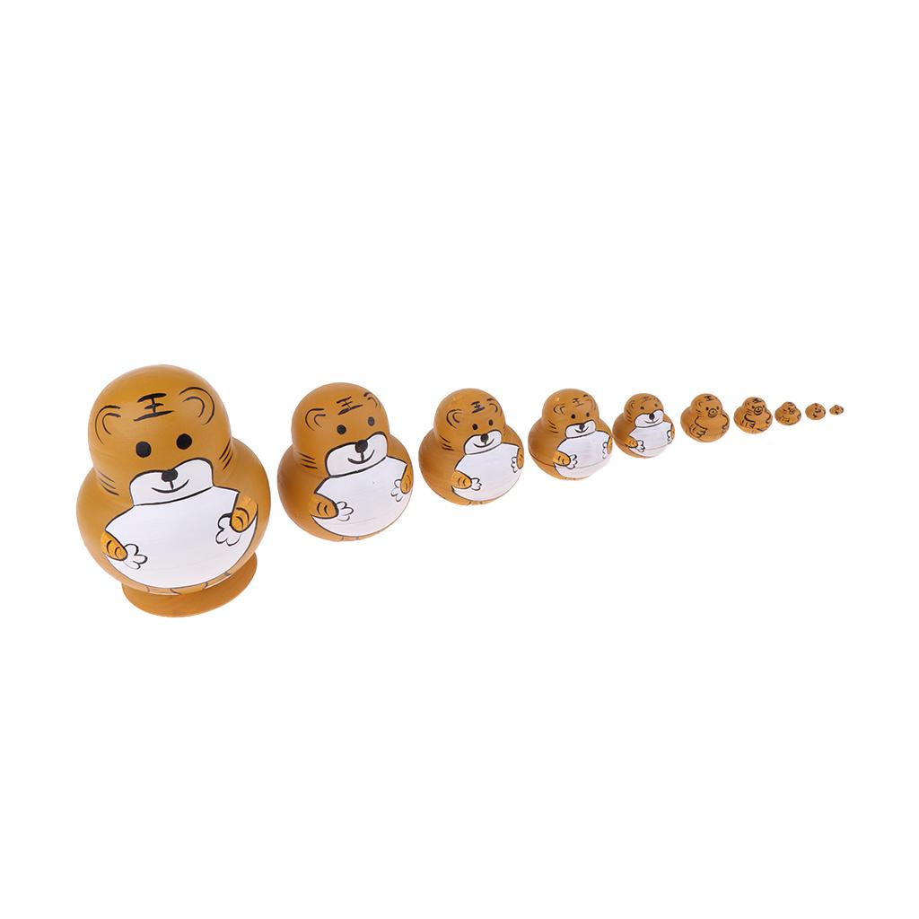 Handmade wooden 10pcs Russian nesting dolls - mini tigers babushka doll for kids DIY accessories toys