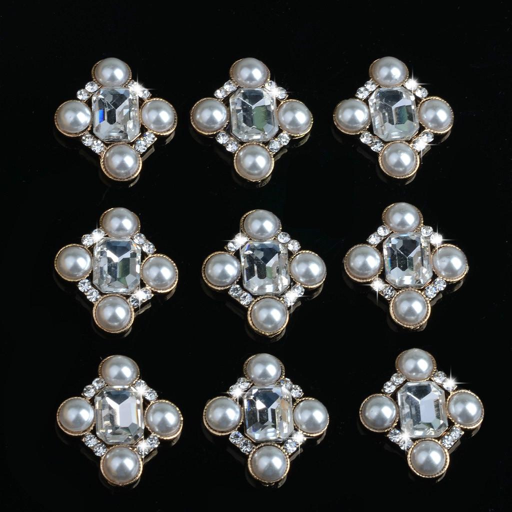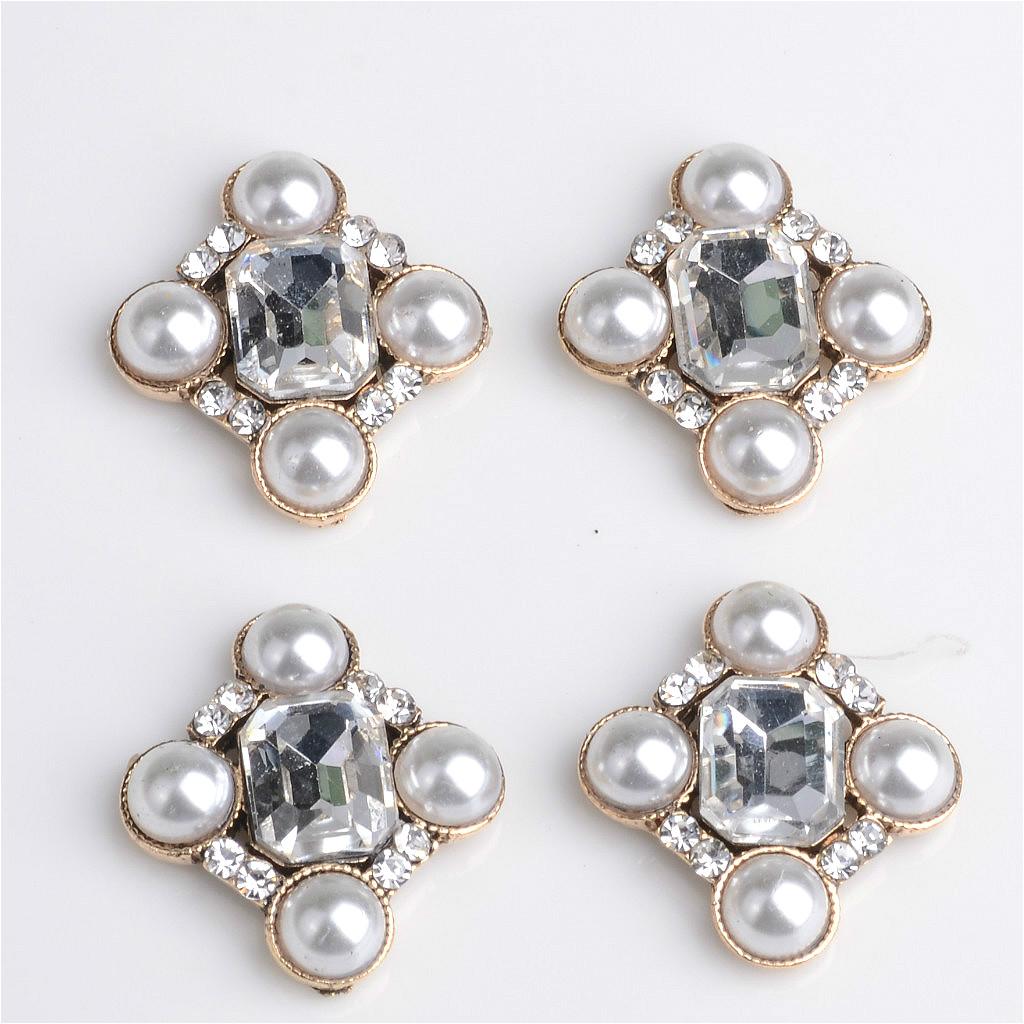 Beautiful pearl craft rhinestone buttons, made of acrylic, rhinestone and zinc alloy