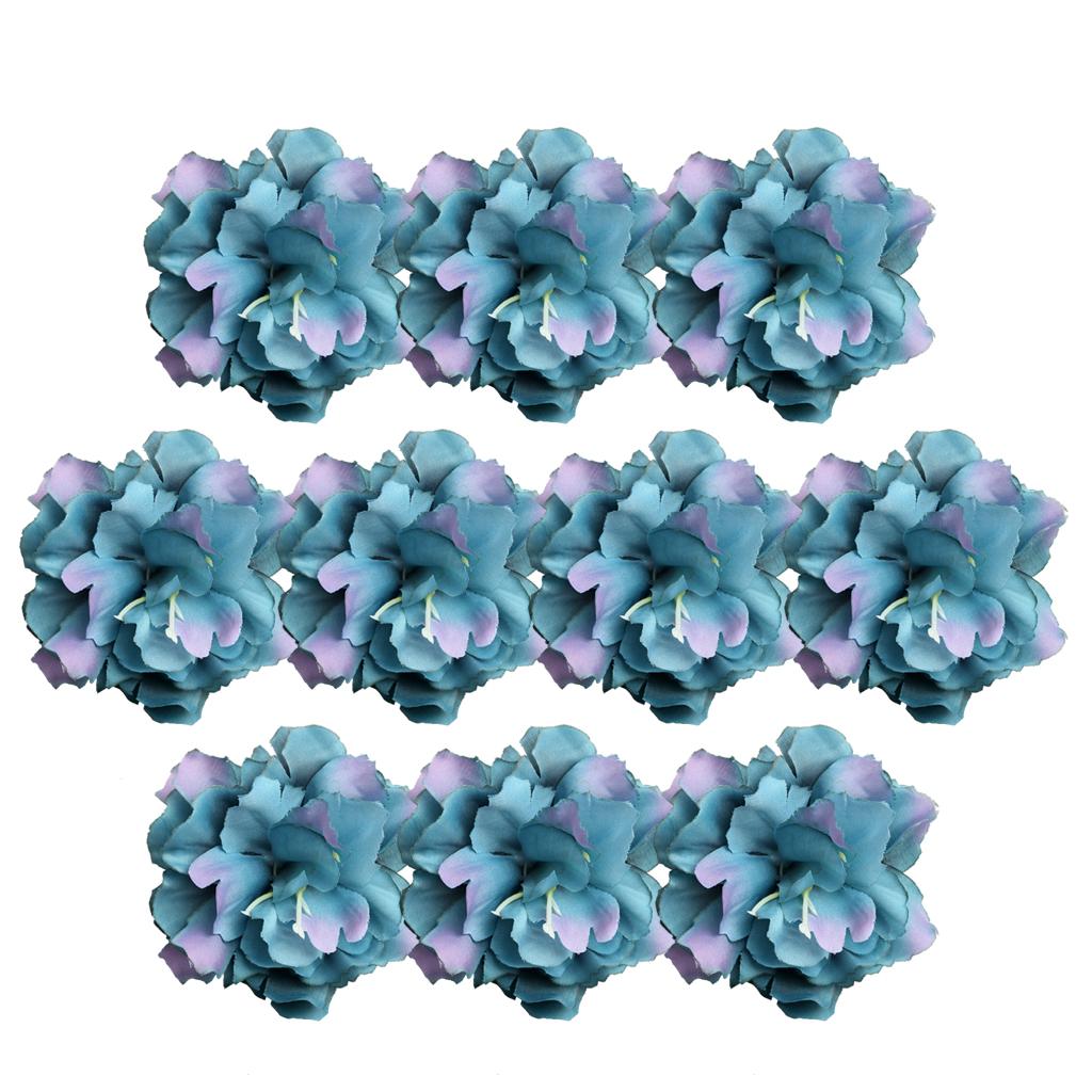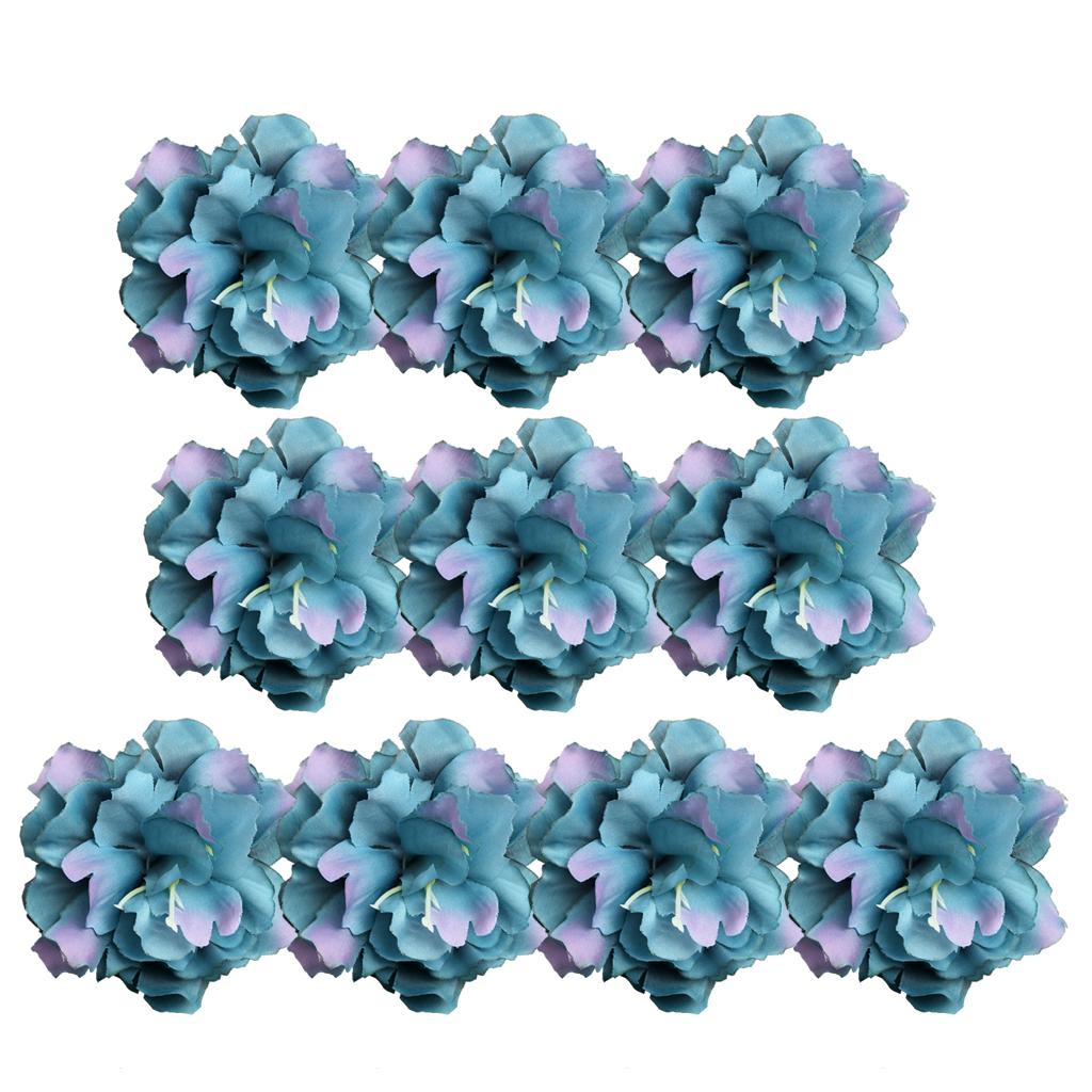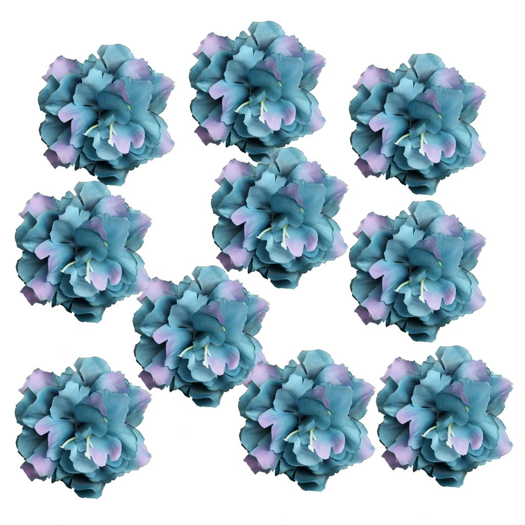10 Pieces European Style Artificial Silk Peony Flower Head 9cm Blue
