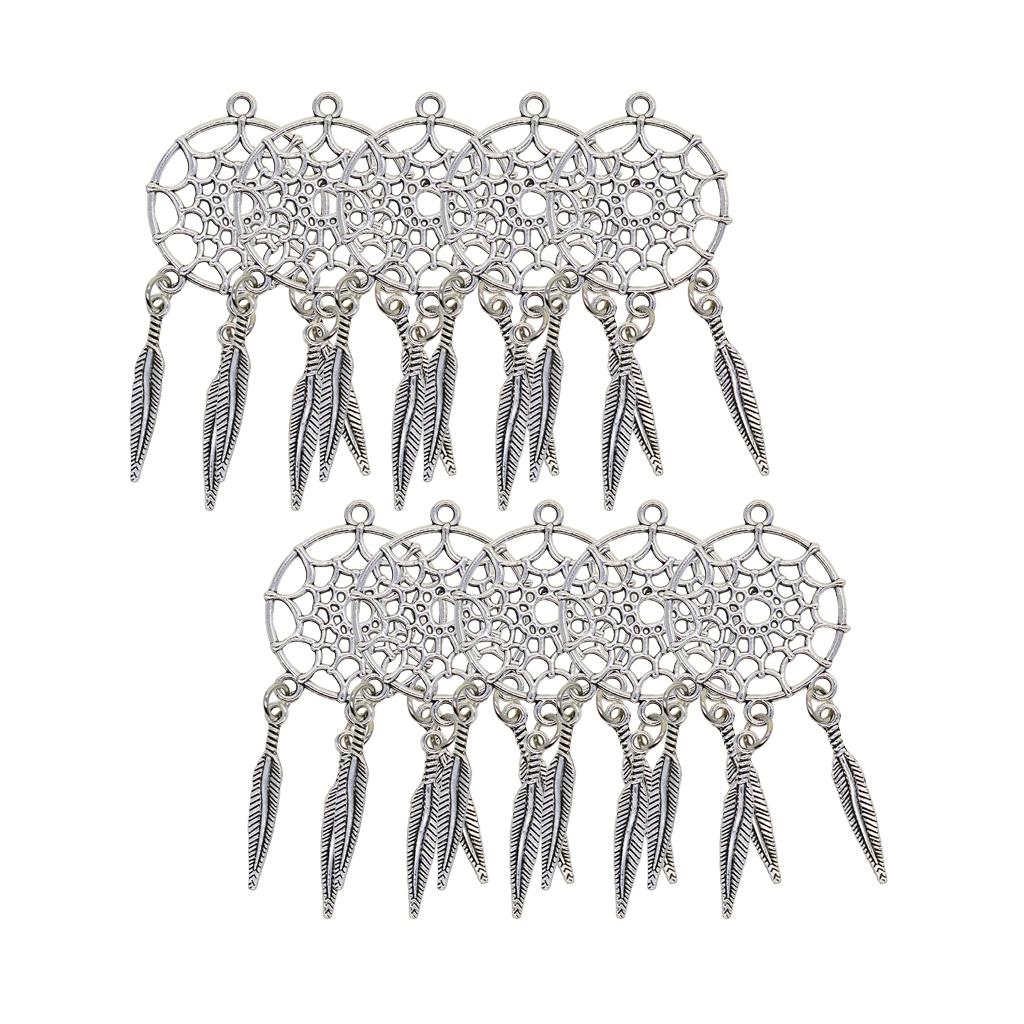 10 Pieces Feather Tassel Pendants Charms for Jewelry Making Tibetan silver