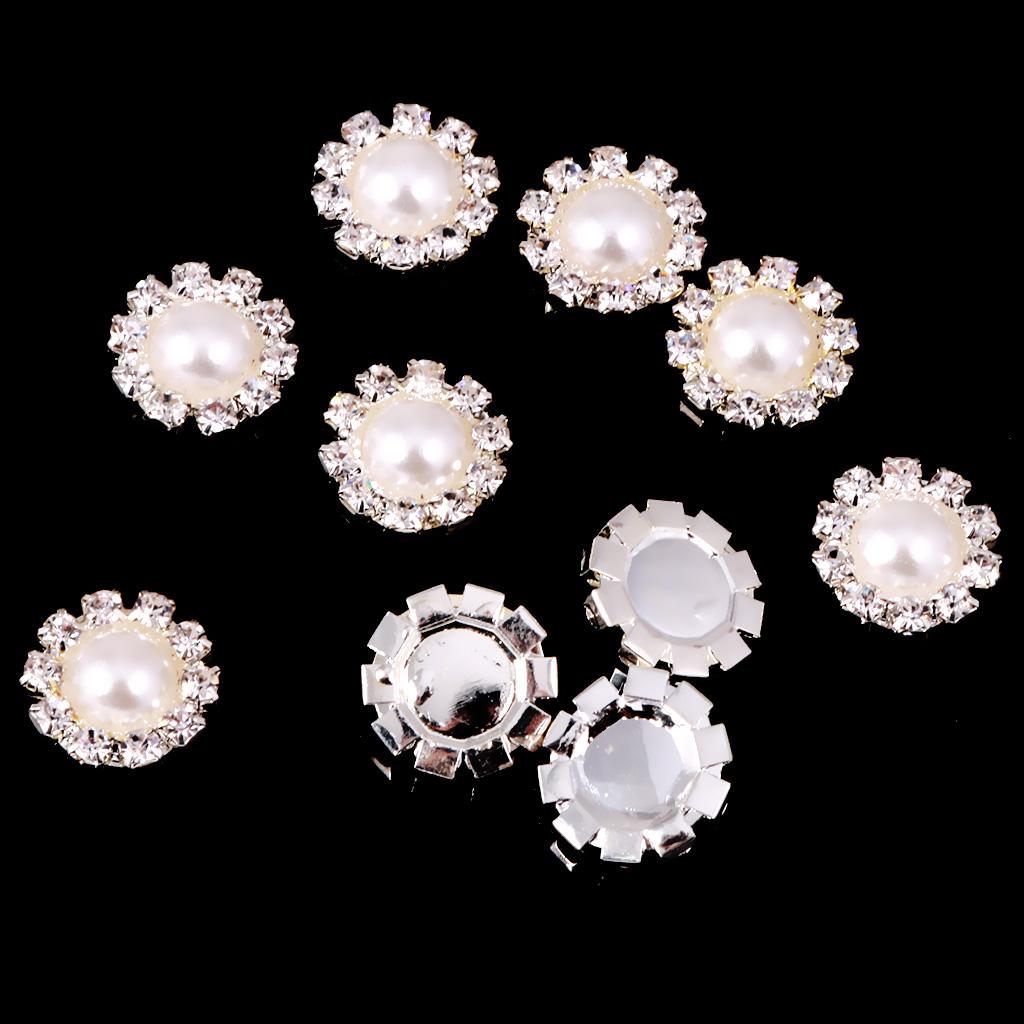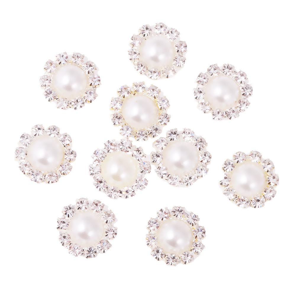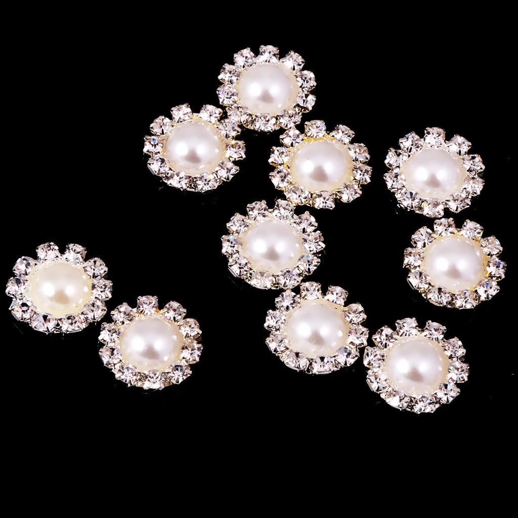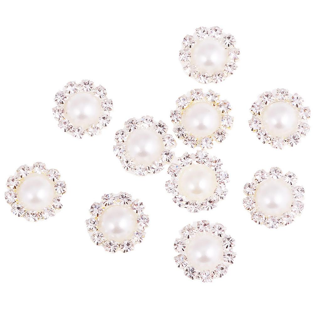 10 Pieces Flower Shape Rhinestone Pearl Flatback Buttons for Wedding Scrapbook Embellishment 13mm