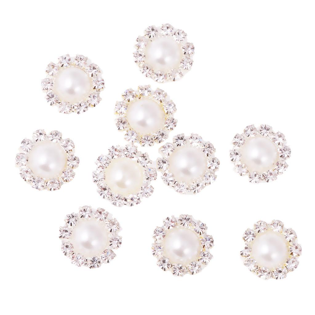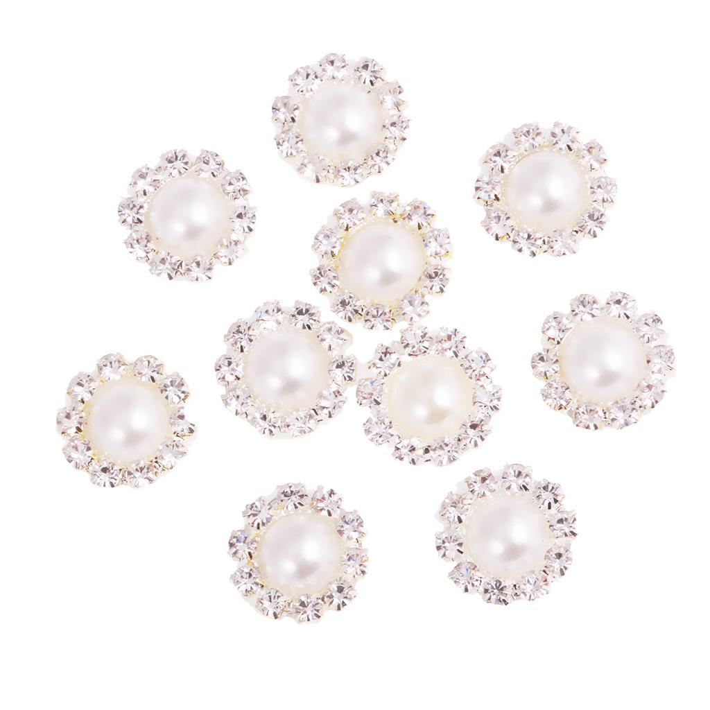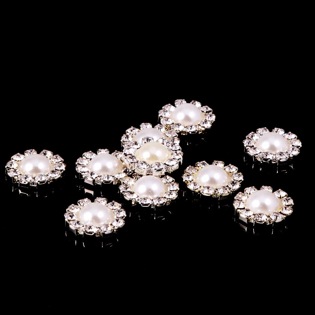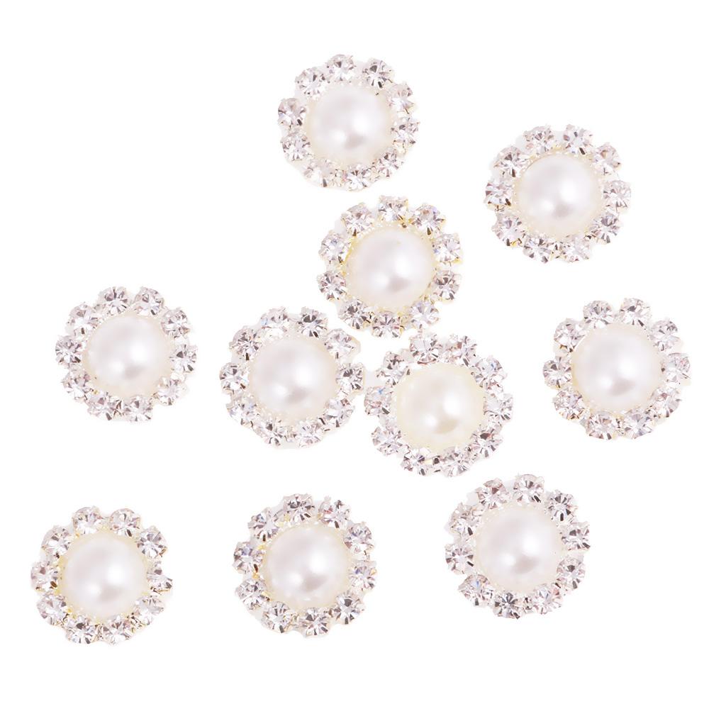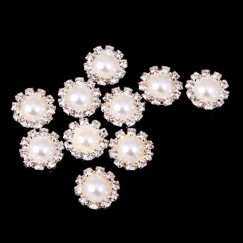 10 Pieces Flower Shape Rhinestone Pearl Flatback Buttons for Wedding Scrapbook Embellishment 13mm
