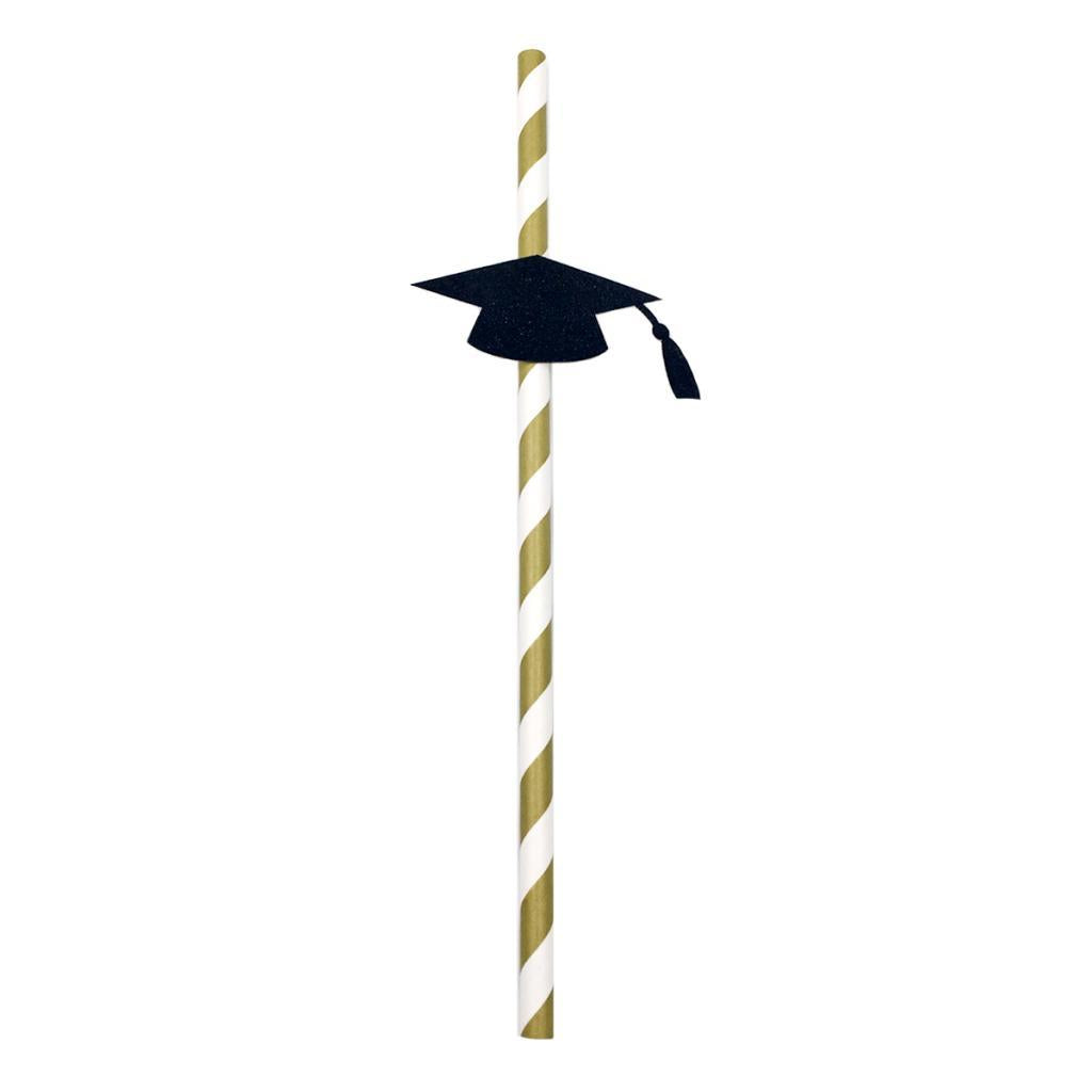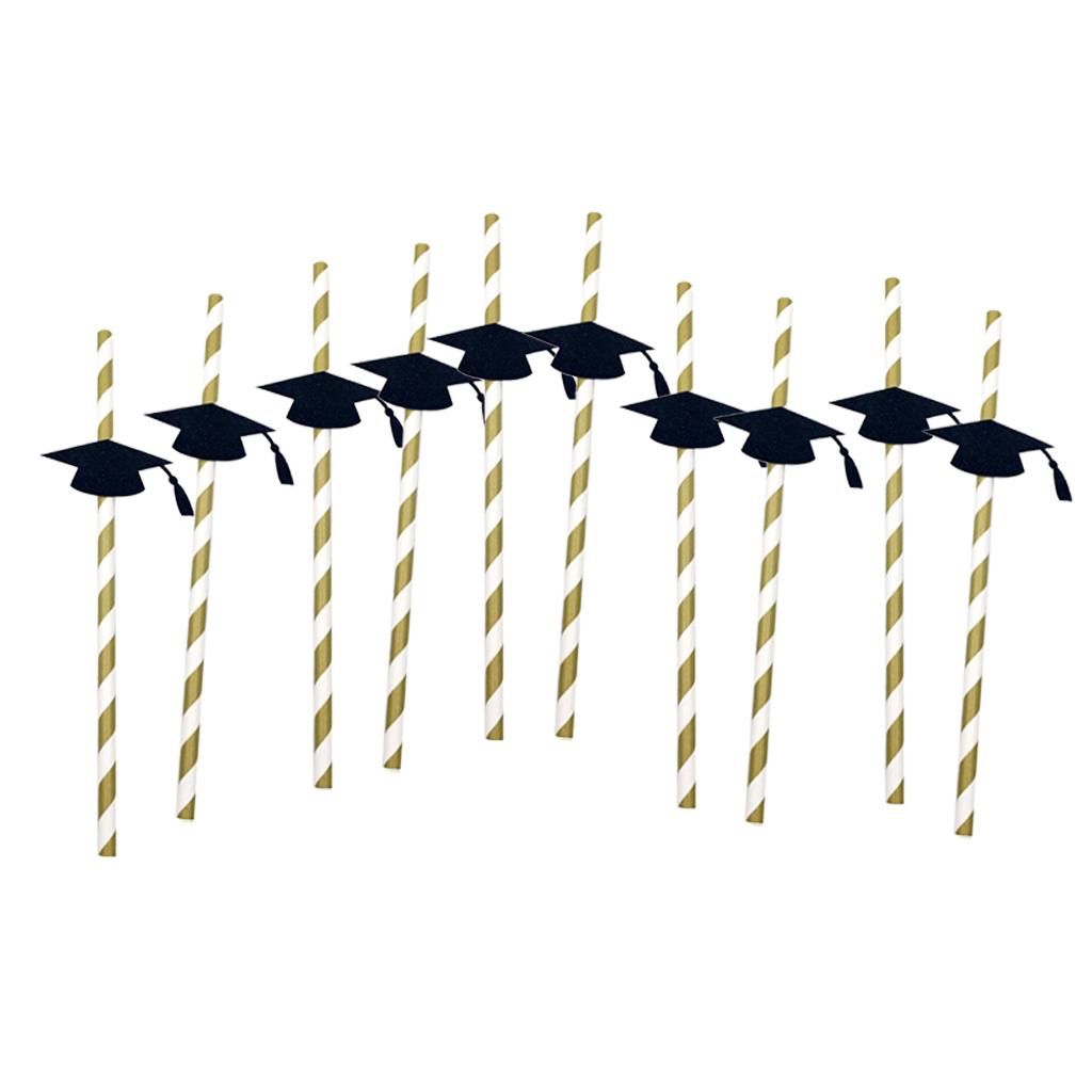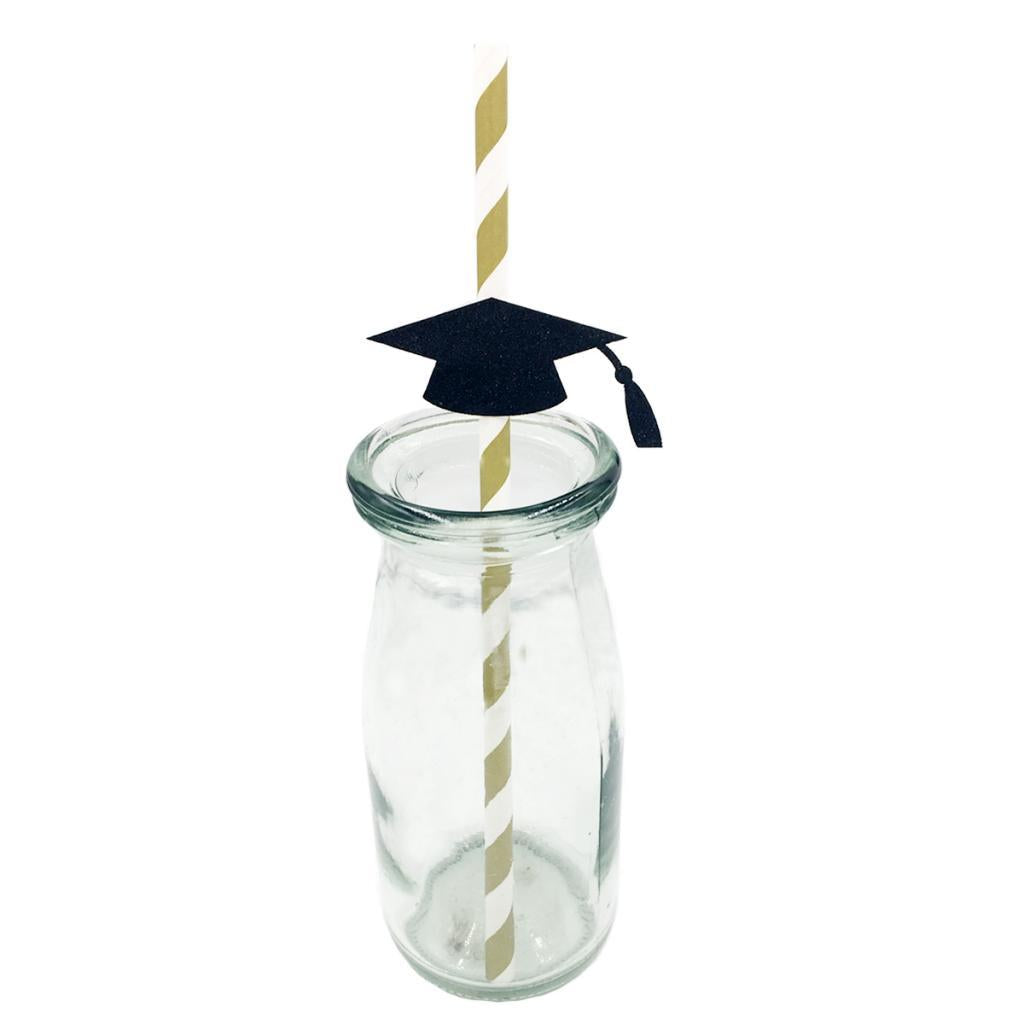 Stripe paper drinking straws with glitter gold Dr. cap decoration.