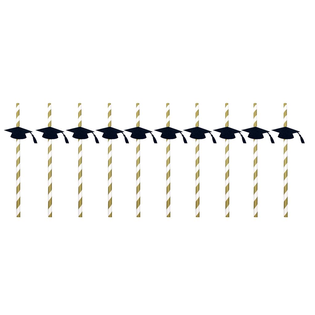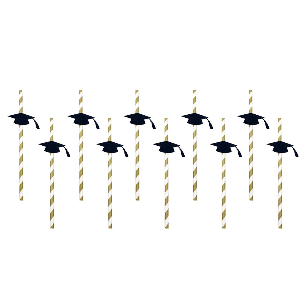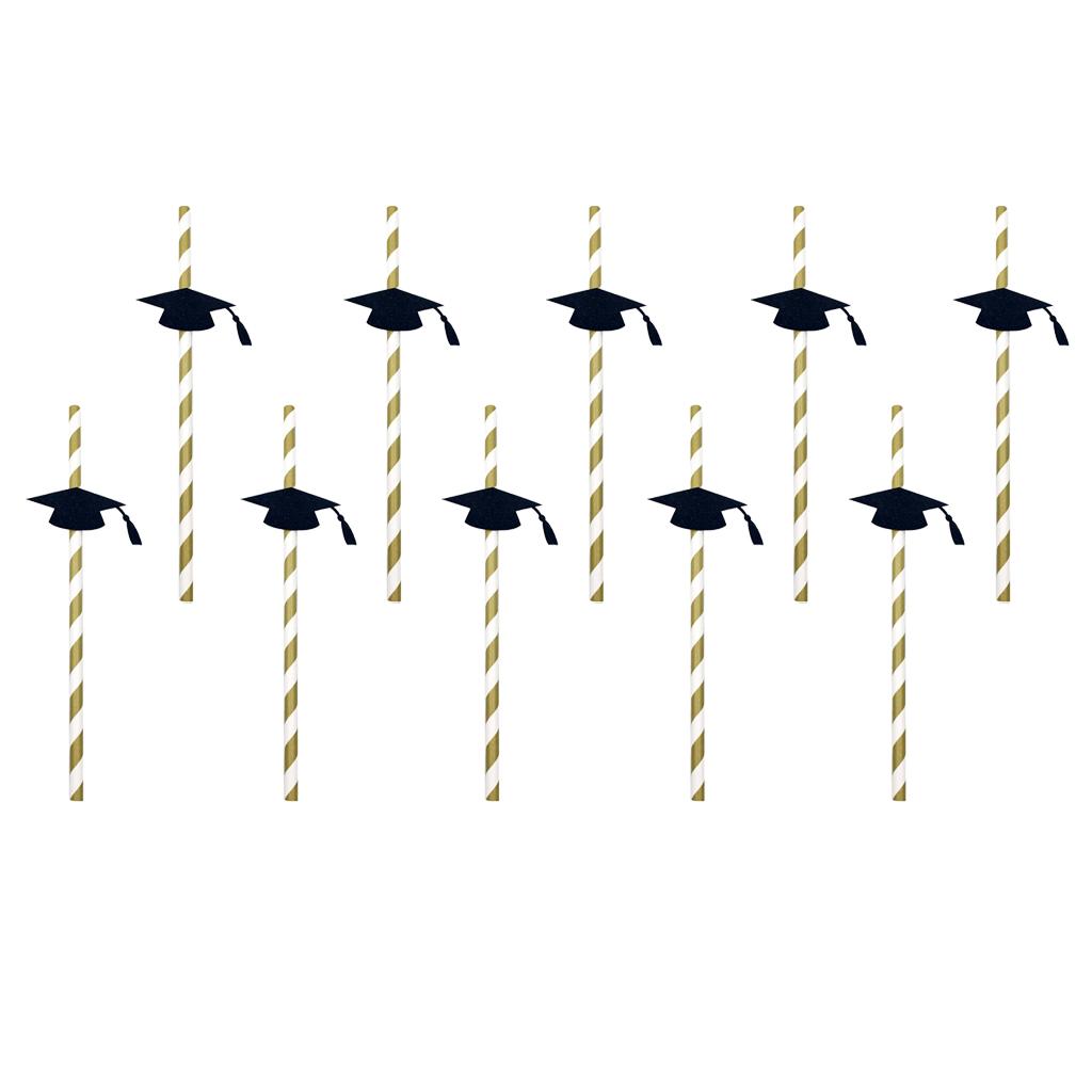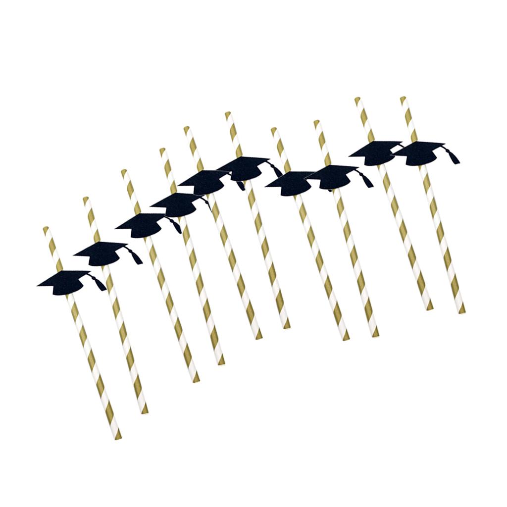 Stripe paper drinking straws with glitter gold Dr. cap decoration.