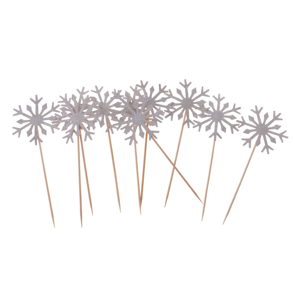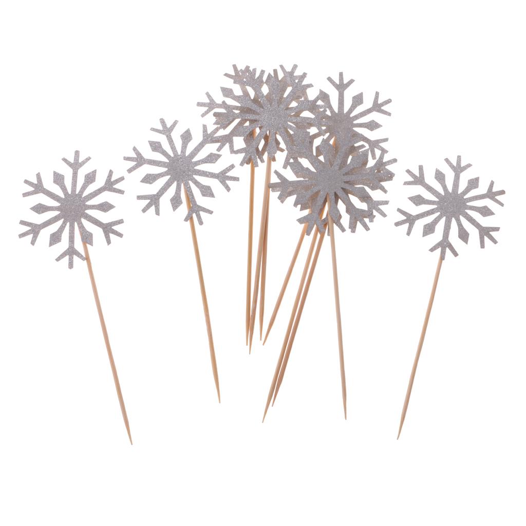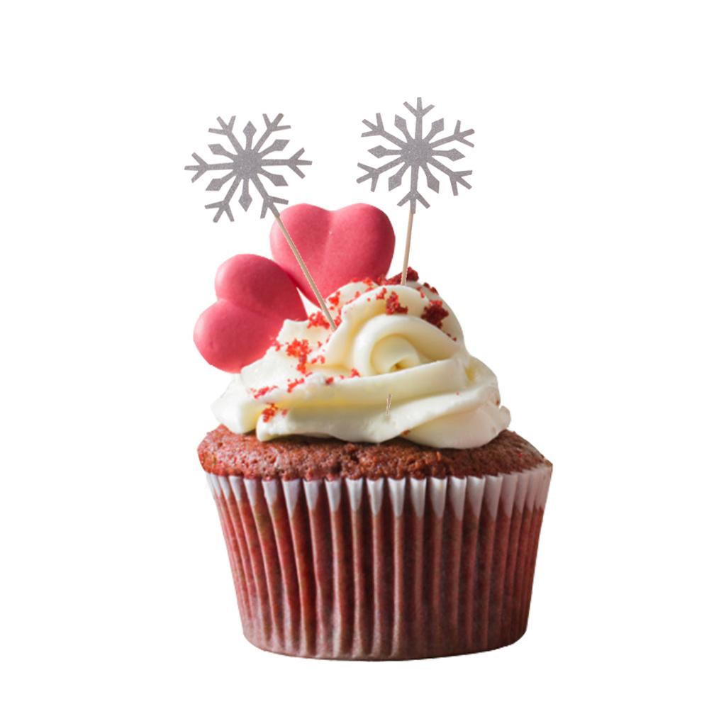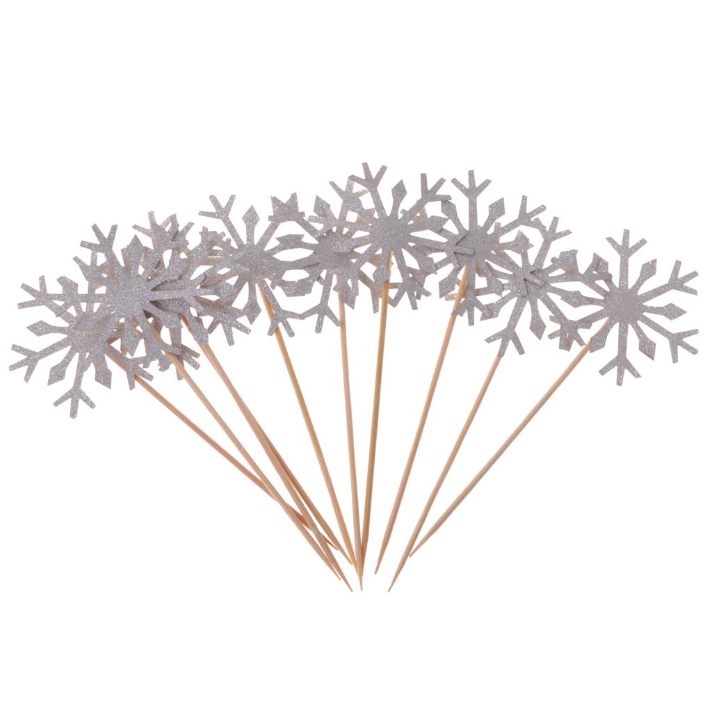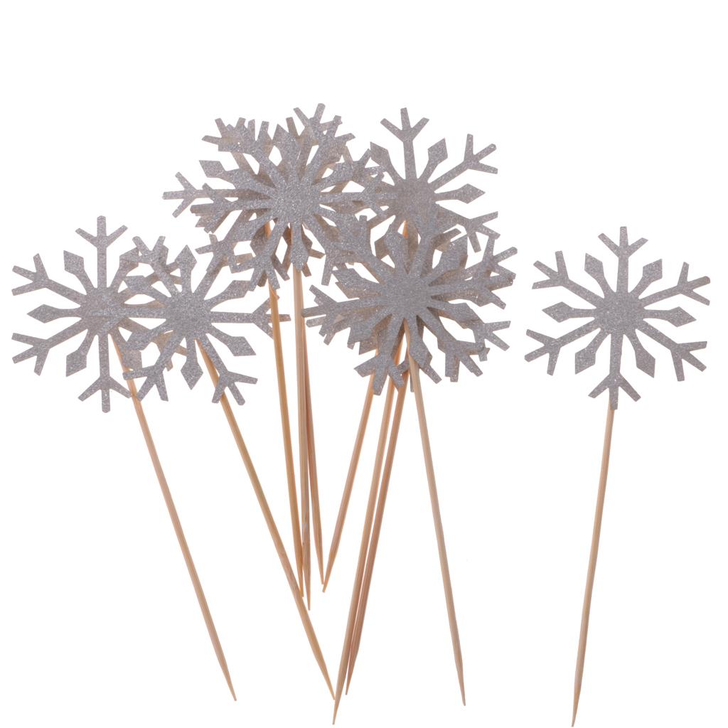 Creative glitter silver snowflake design cake toppers cupcake picks
