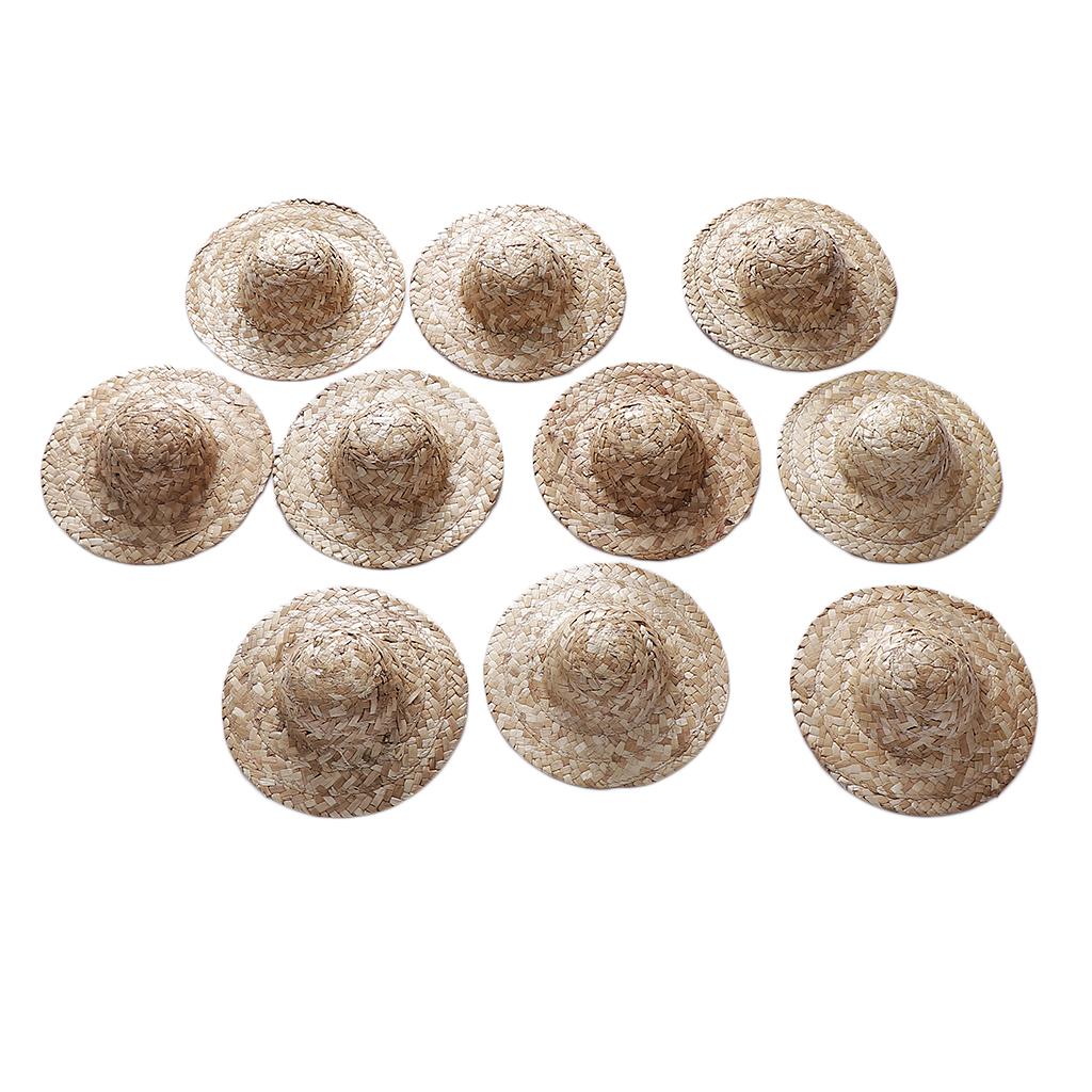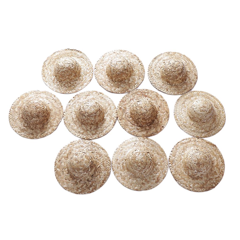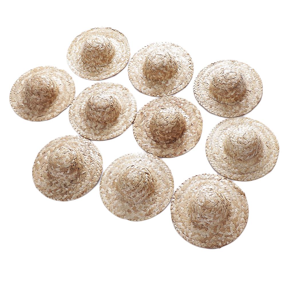 10 Pieces Vintage Round Bowler Hand Knitting Straw Hat Mini Doll Hat Cap Strawhat Diy Jewelry Accessories Craft For Doll Clothes Accs, Hat Elegant Classic Formal Cap,doll Headdressing Cotume Clothes Clothing Decoration