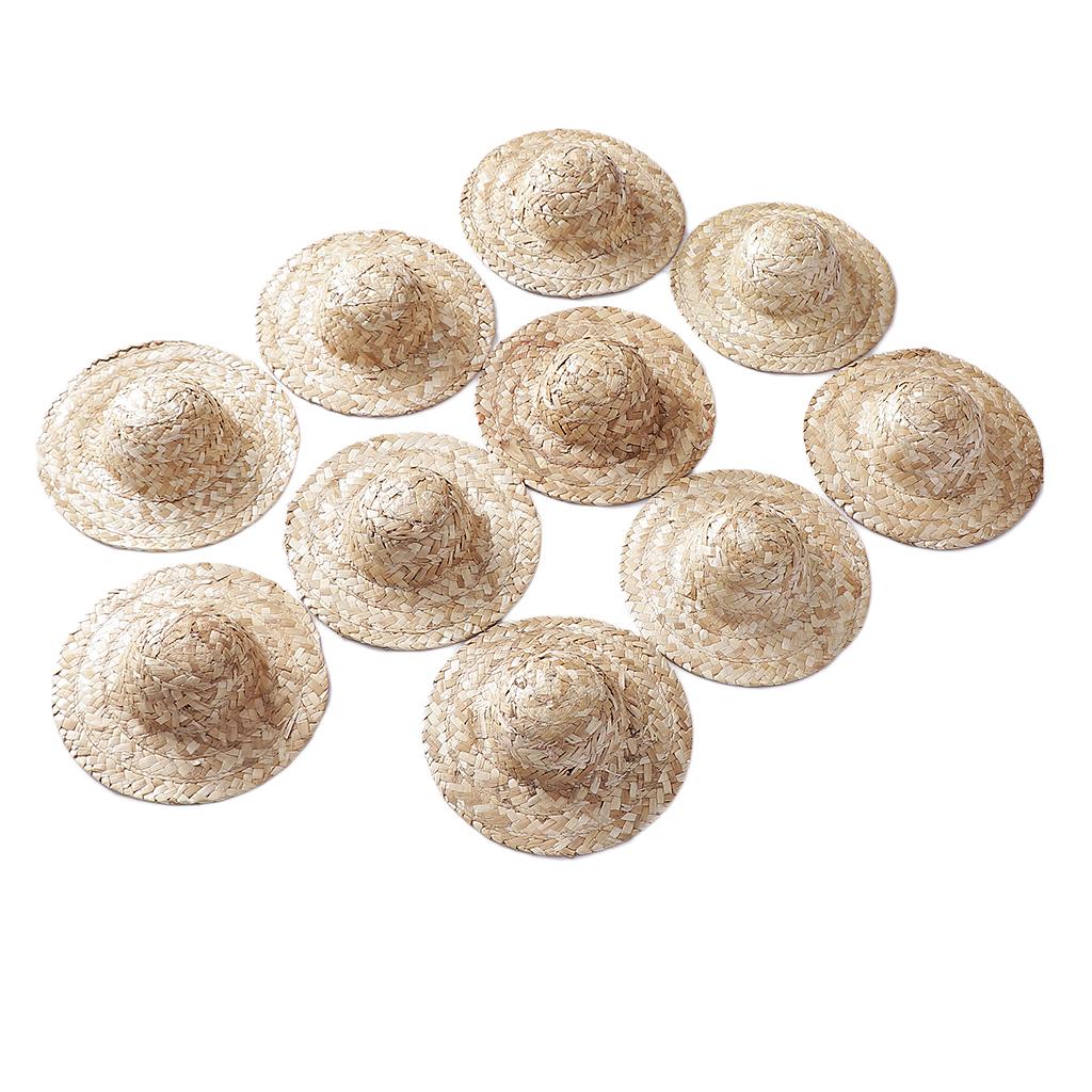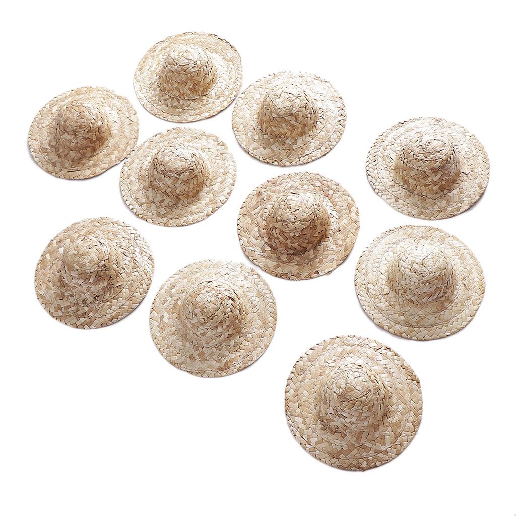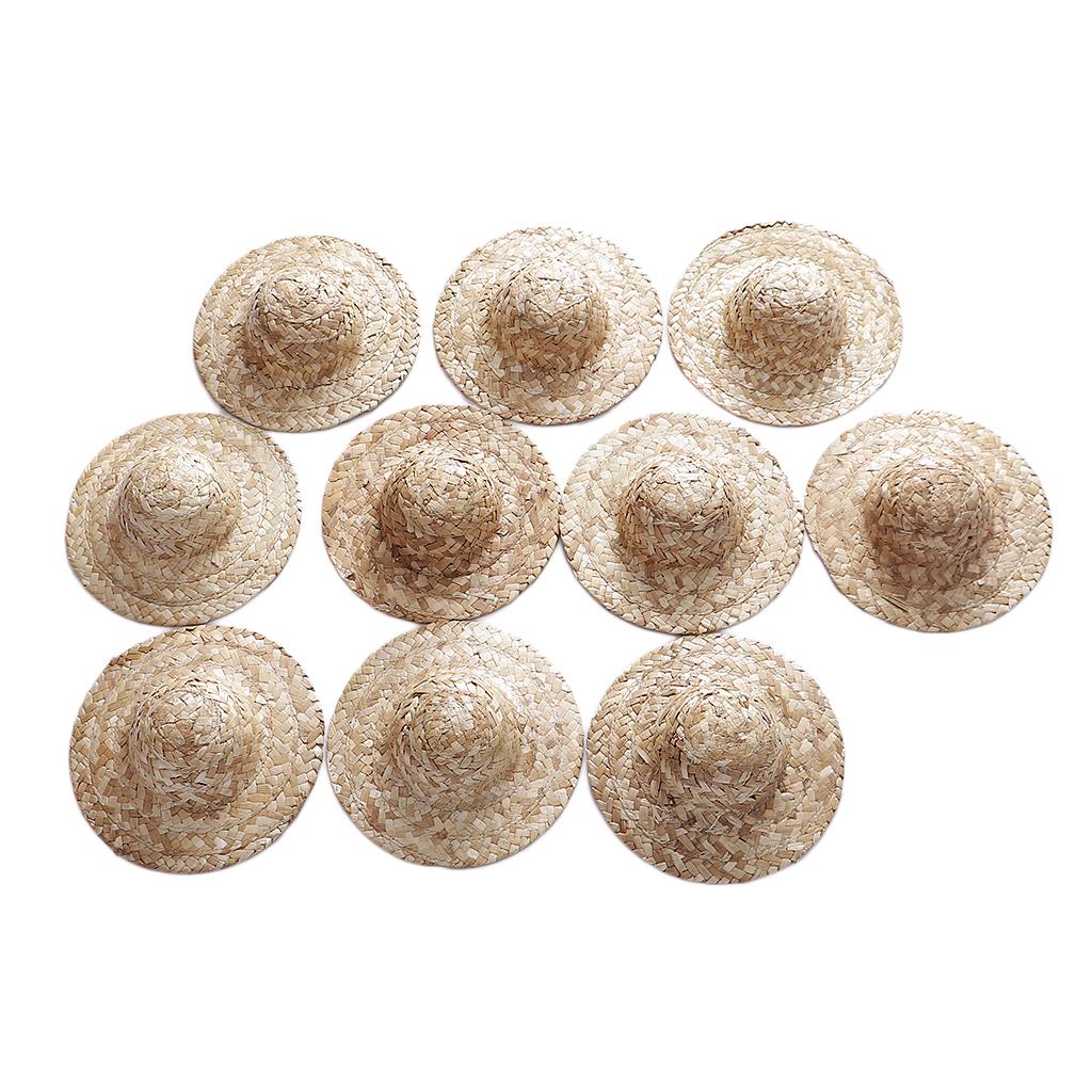 10 Pieces Vintage Round Bowler Hand Knitting Straw Hat Mini Doll Hat Cap Strawhat Diy Jewelry Accessories Craft For Doll Clothes Accs, Hat Elegant Classic Formal Cap,doll Headdressing Cotume Clothes Clothing Decoration