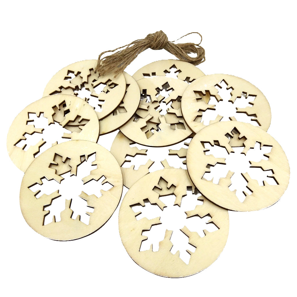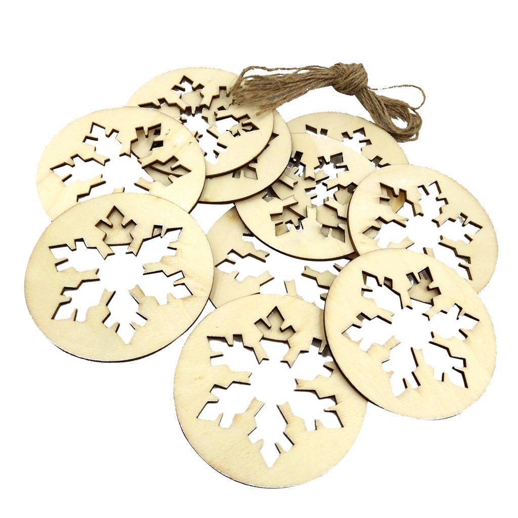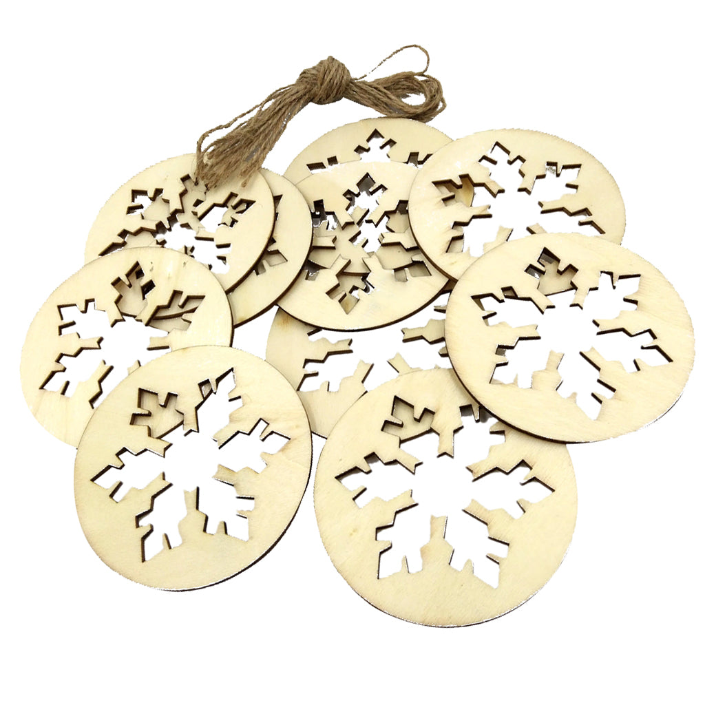 10 Pieces Snowflake Wooden Embellishments with String