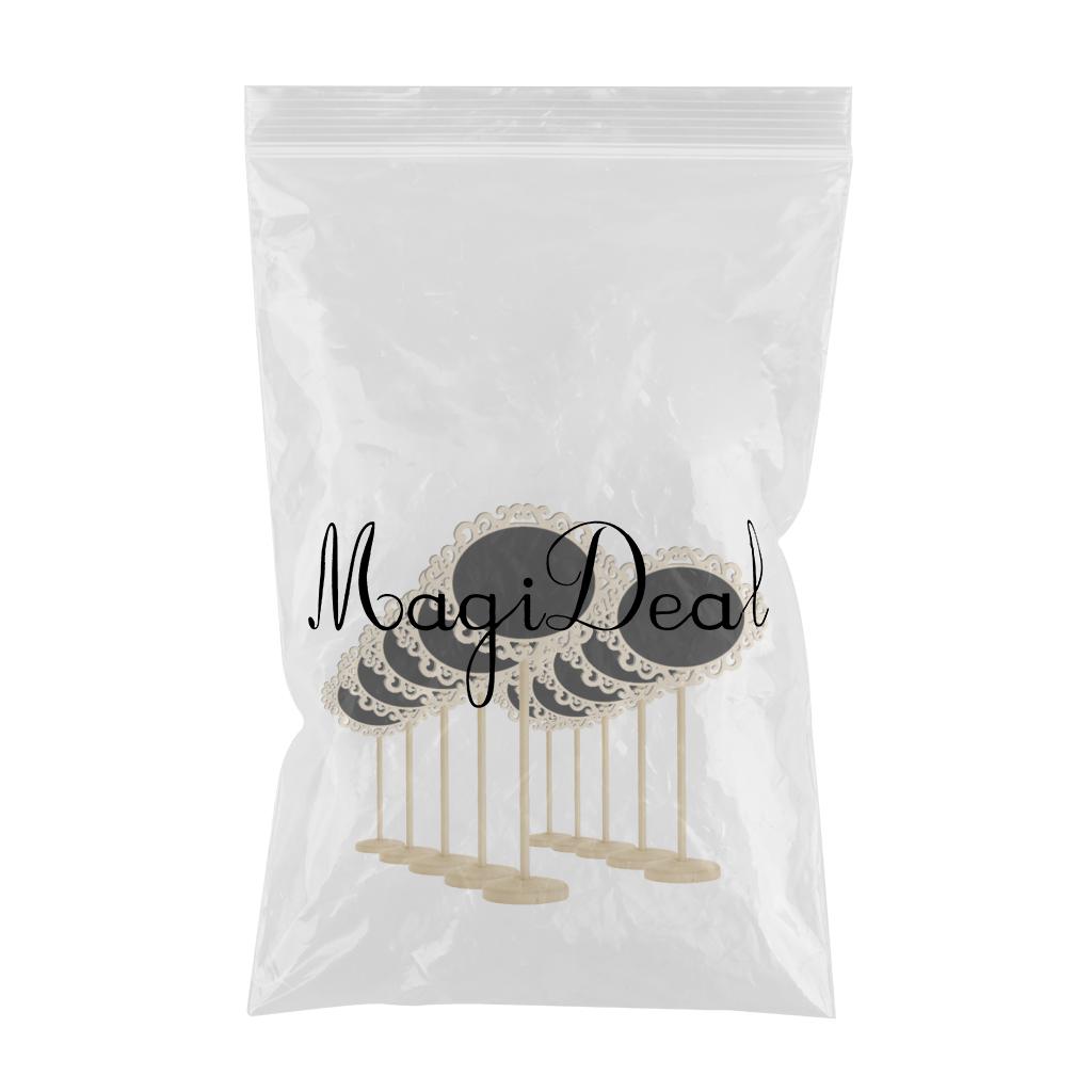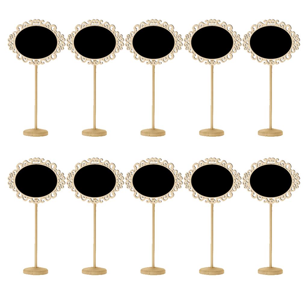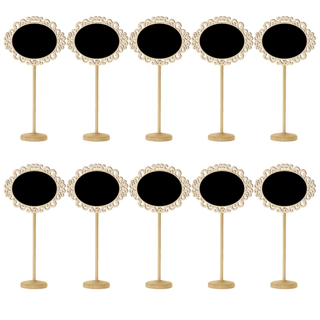 10 Pieces Hollowed-out Wood Lace Oval Blackboard Table Chalkboard for Tabletop Decoration 20 x11cm