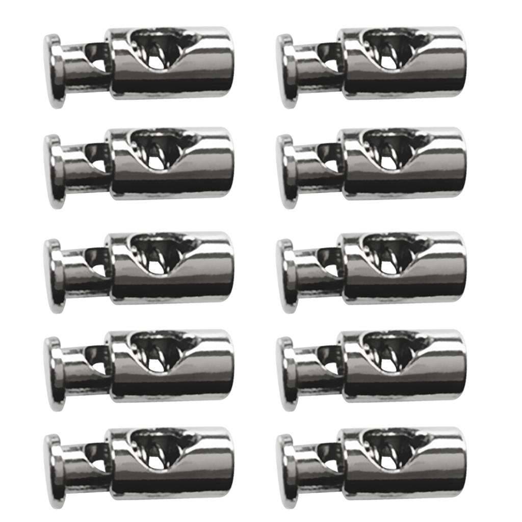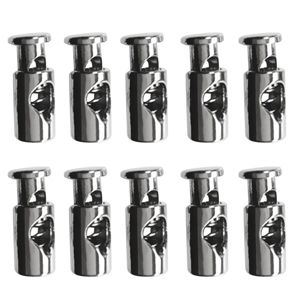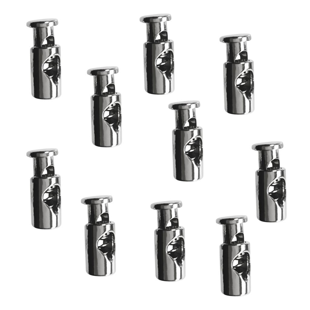 10Pcs Silver Zinc Alloy Toggles Spring Stop Barrel Single-Holes Drawstring Rope Cord Locks