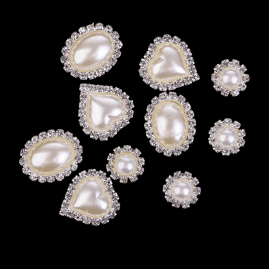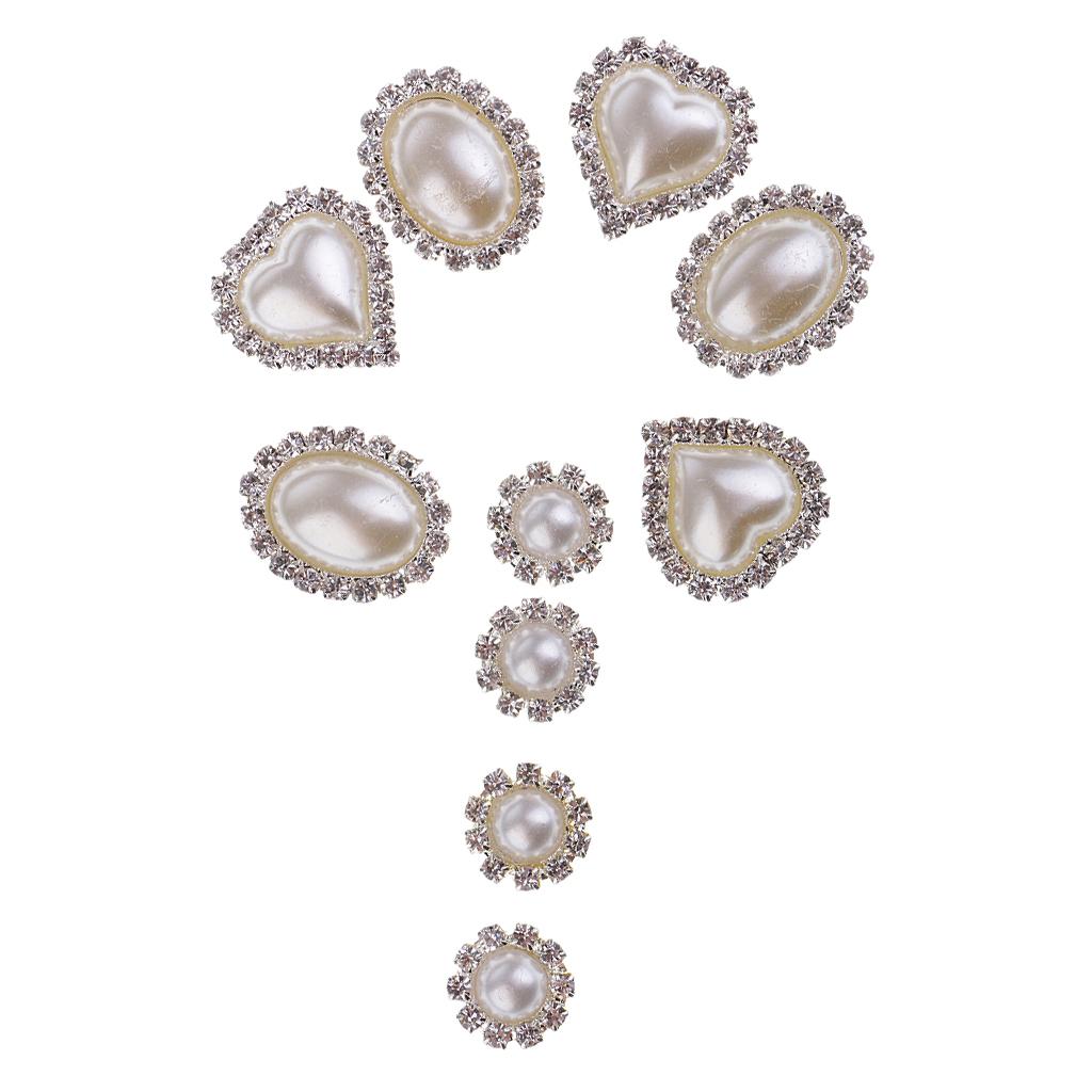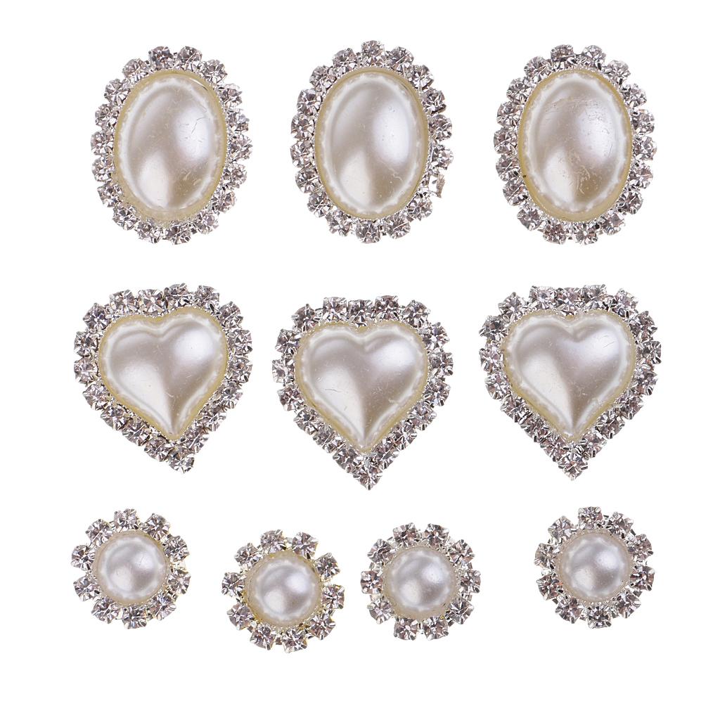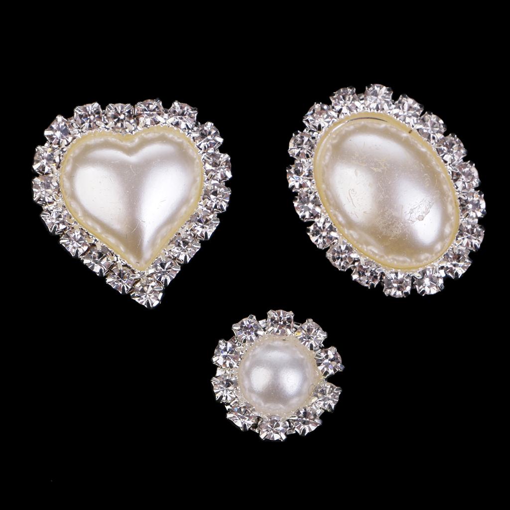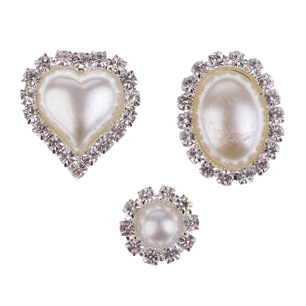 3 styles/shapes (3pcsLove heart / 3pcs oval / 4pcs round) beautiful pearl flatback buttons rhinestone embellishments