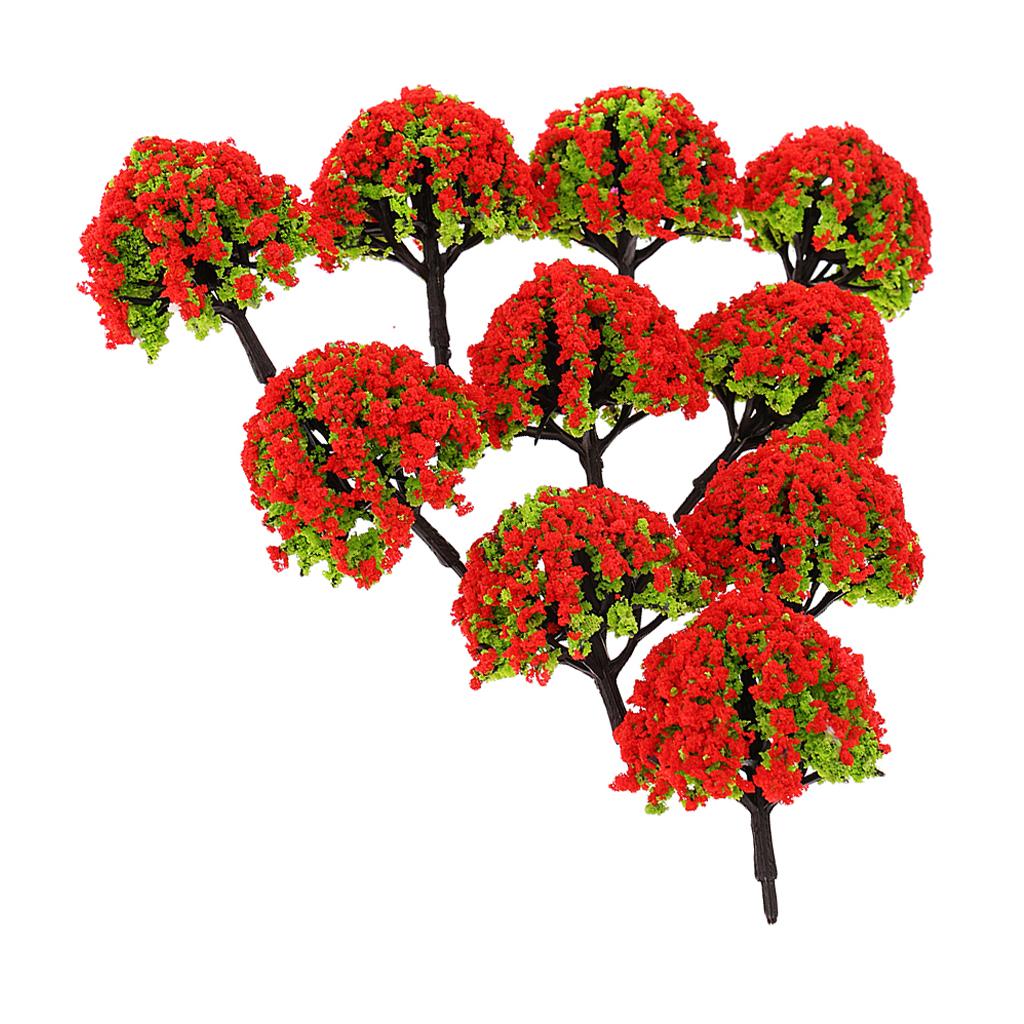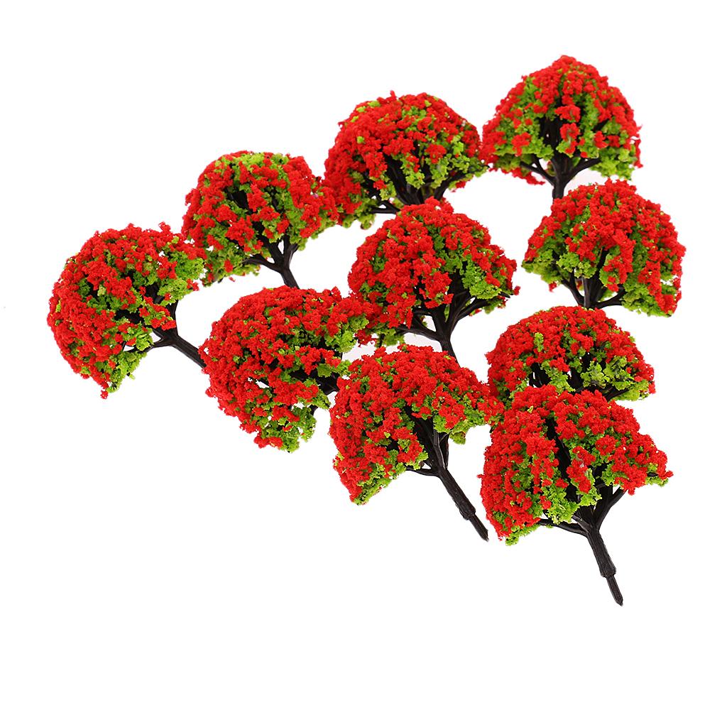 10 Pieces Model Flower Trees Green Scenery Landscape for Diorama Red Yellow