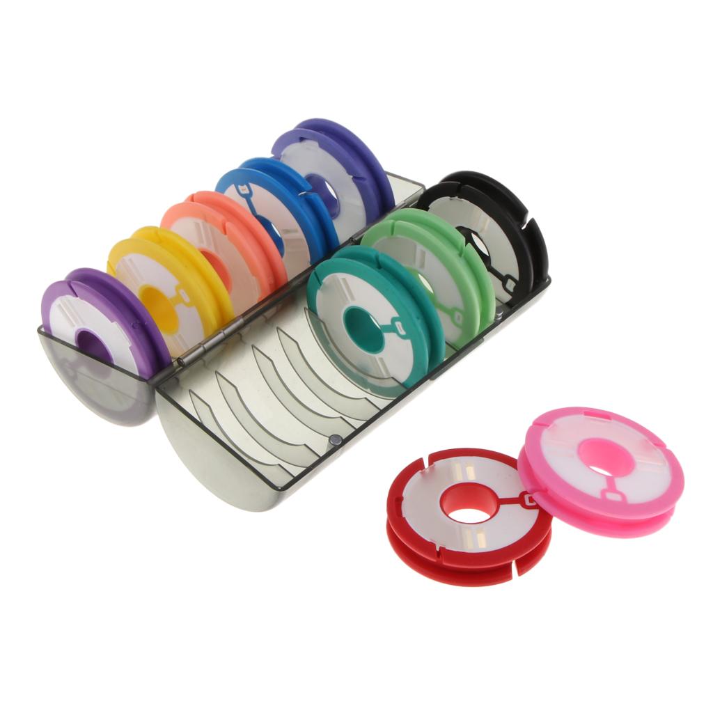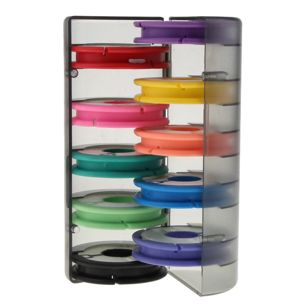 10pcs silicone & pc fishing line bobbin spools, with box.