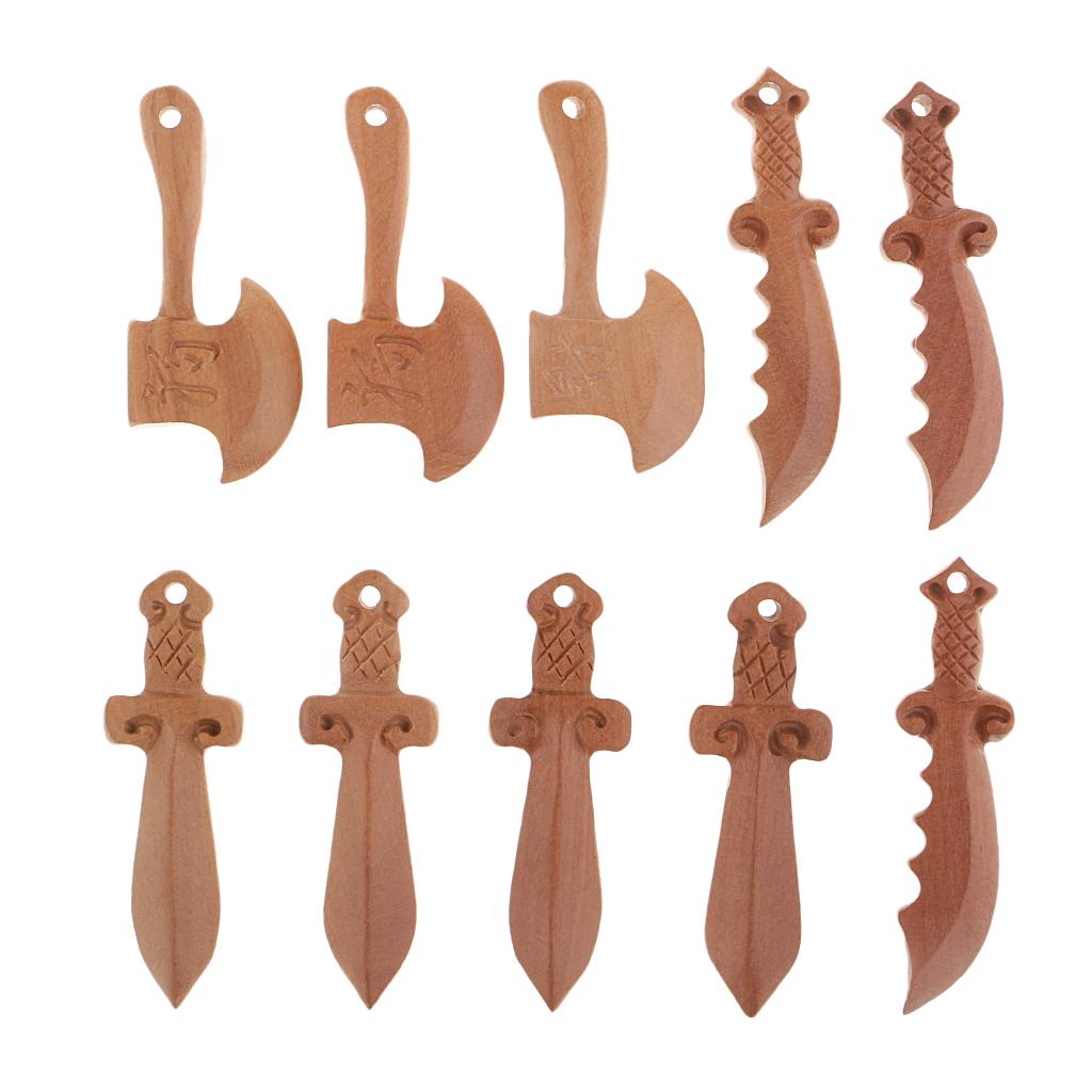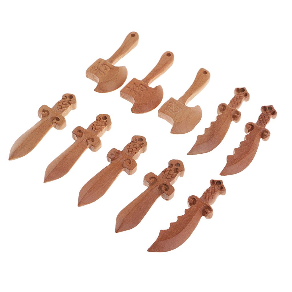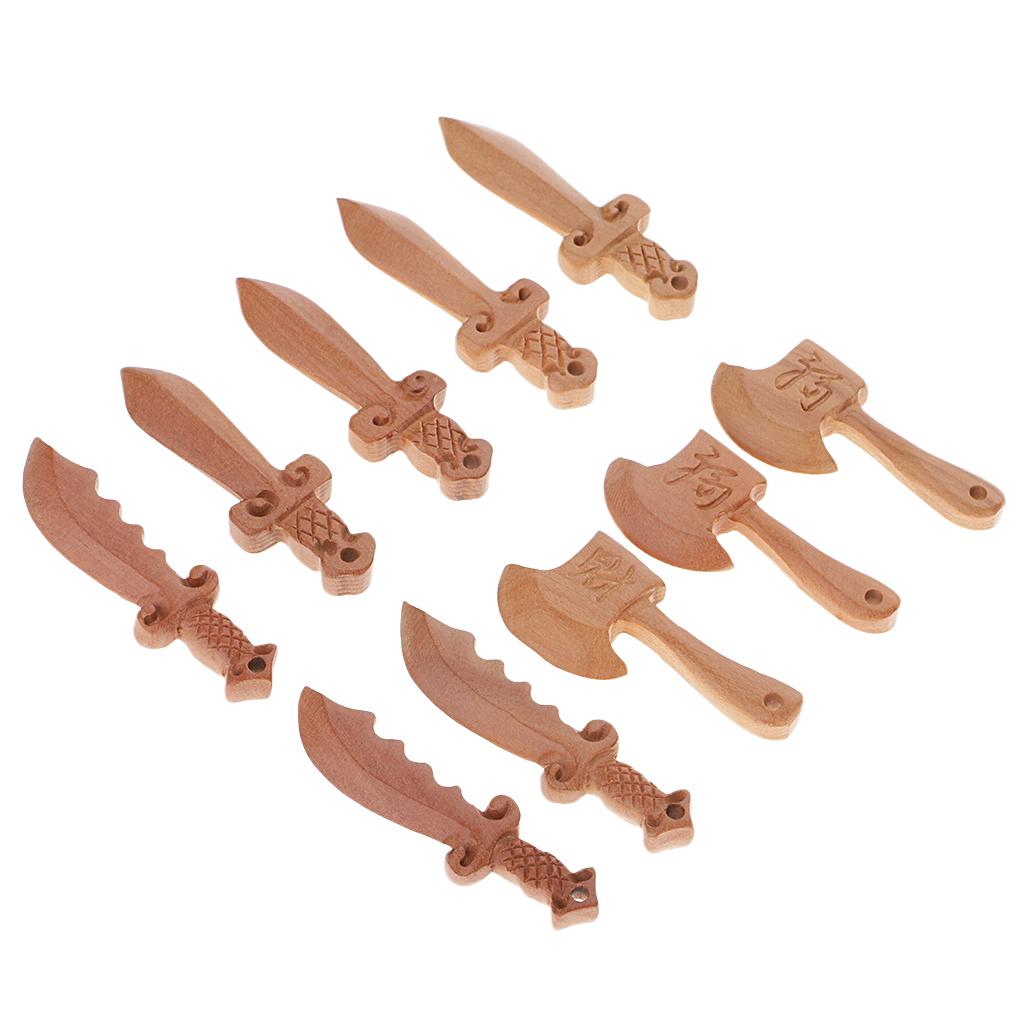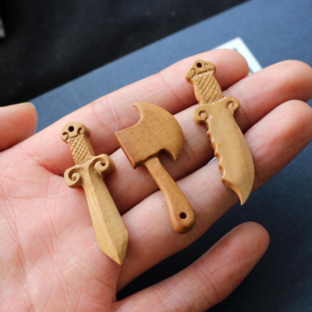 10pcs Peach Wood Carved Sword Knife Axe Pendant Charms Beads Bracelet Jewelry Findings DIY Accessories.