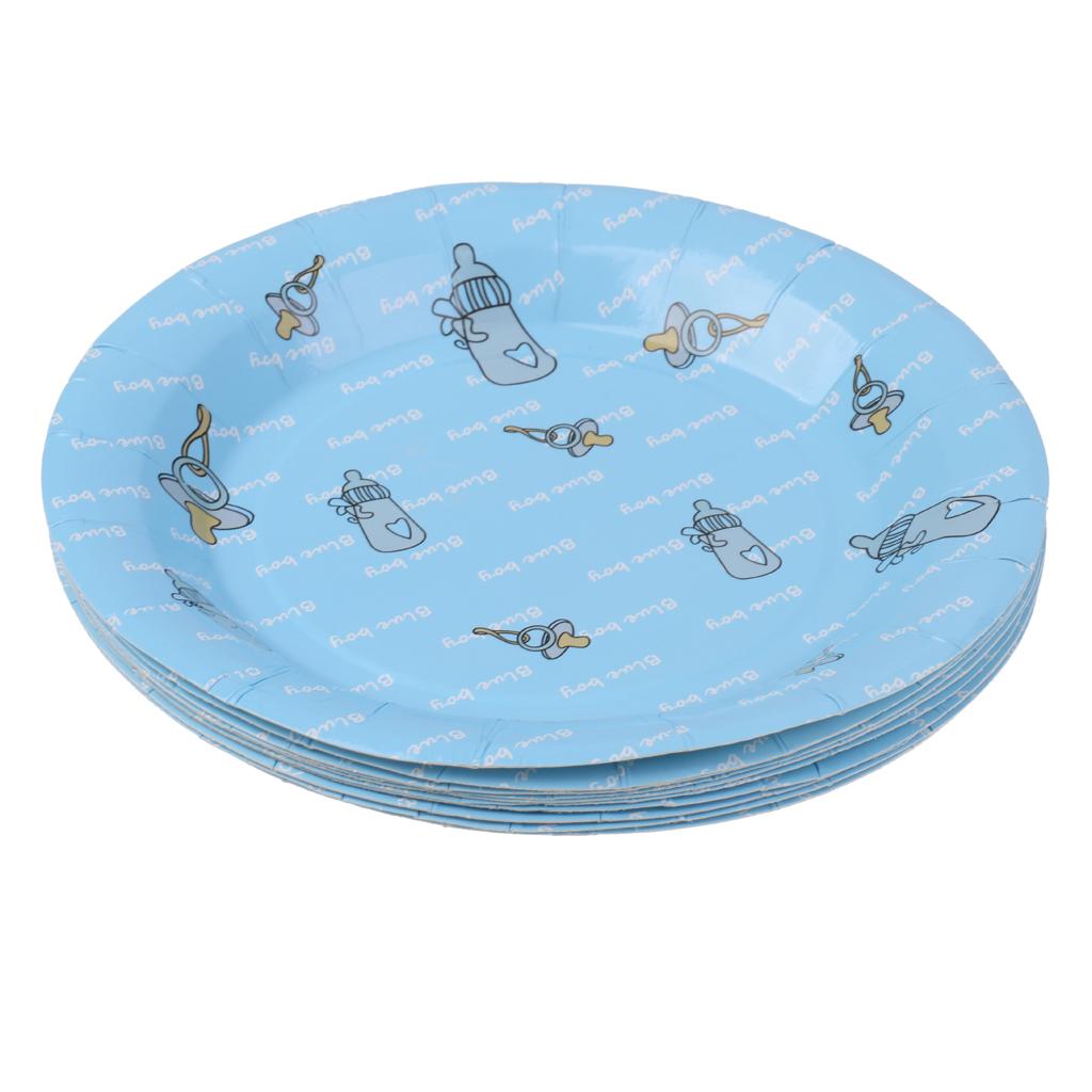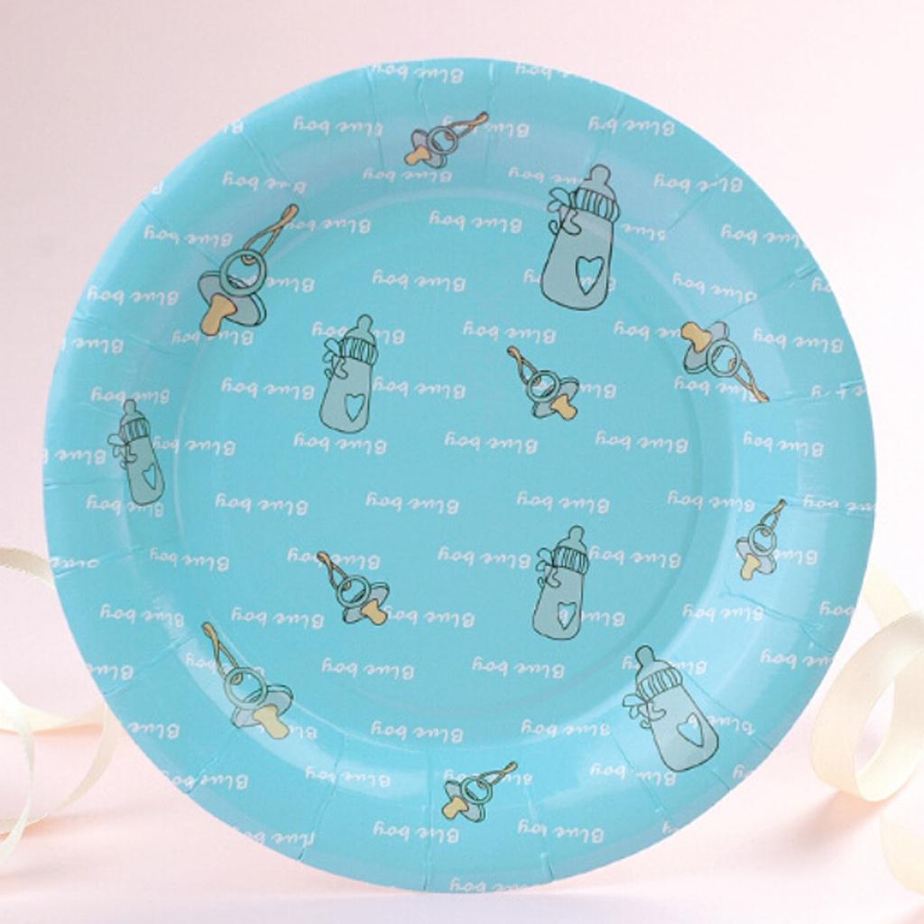 Round shape with Feeding Bottles Pacifiers Pattern Paper Plates