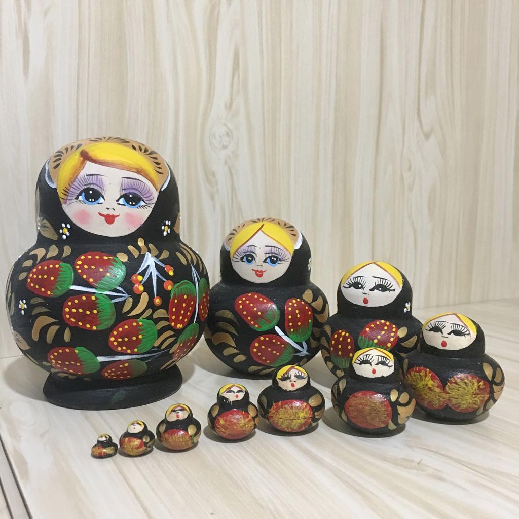 It consists of 10 dolls, all smaller dolls are entering into a bigger one