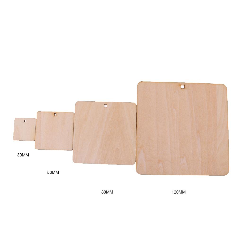 Wooden Square shapes with hole, cut from high quality Basswood.
