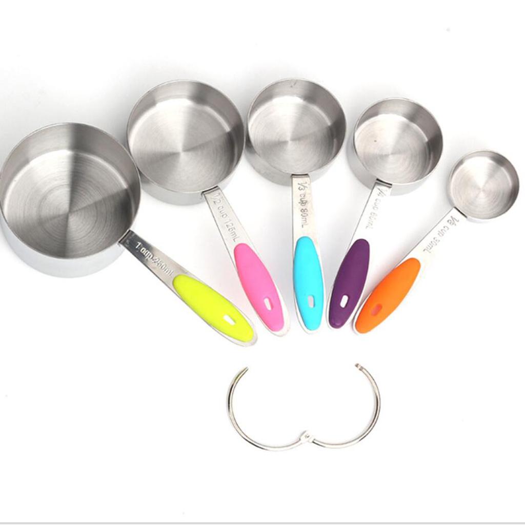 5 pieces stainless steel measuring cups & 5 pieces spoons set, fitting for almost any jar and liquid.