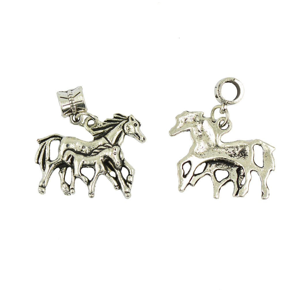 Vintage Tibetan silver mother horse and baby horse walking together charms pendant