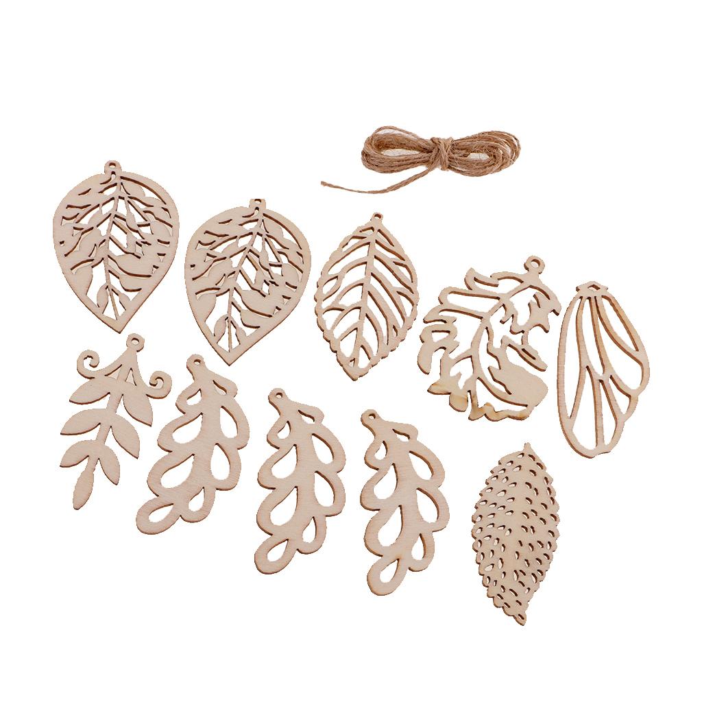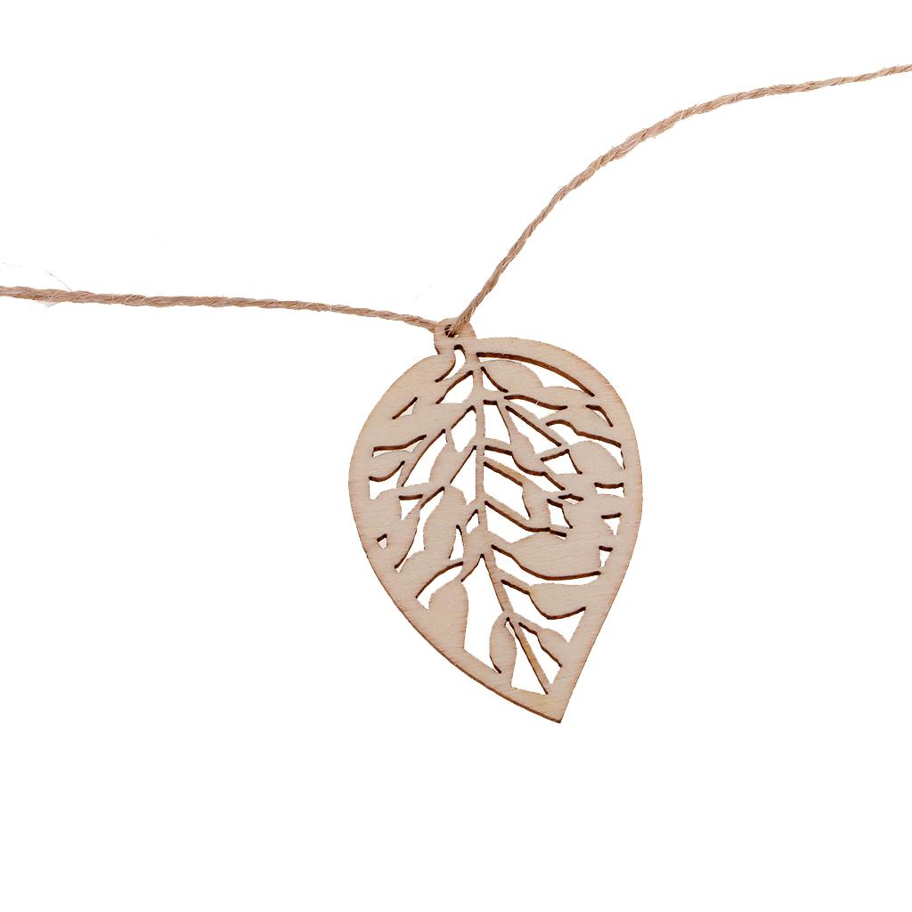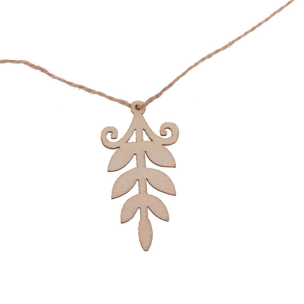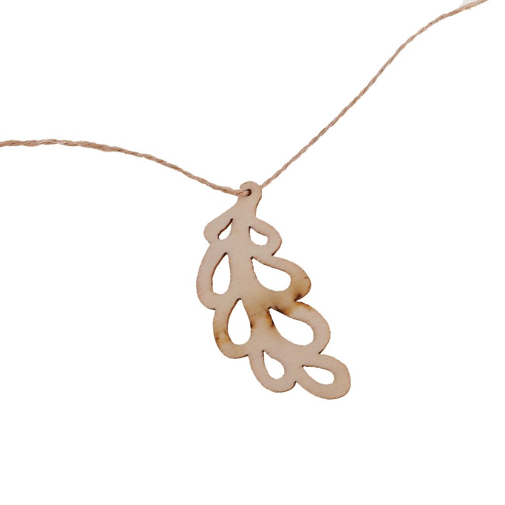 Natural wooden shapes with hole and natural twine, cut from high quality wood.