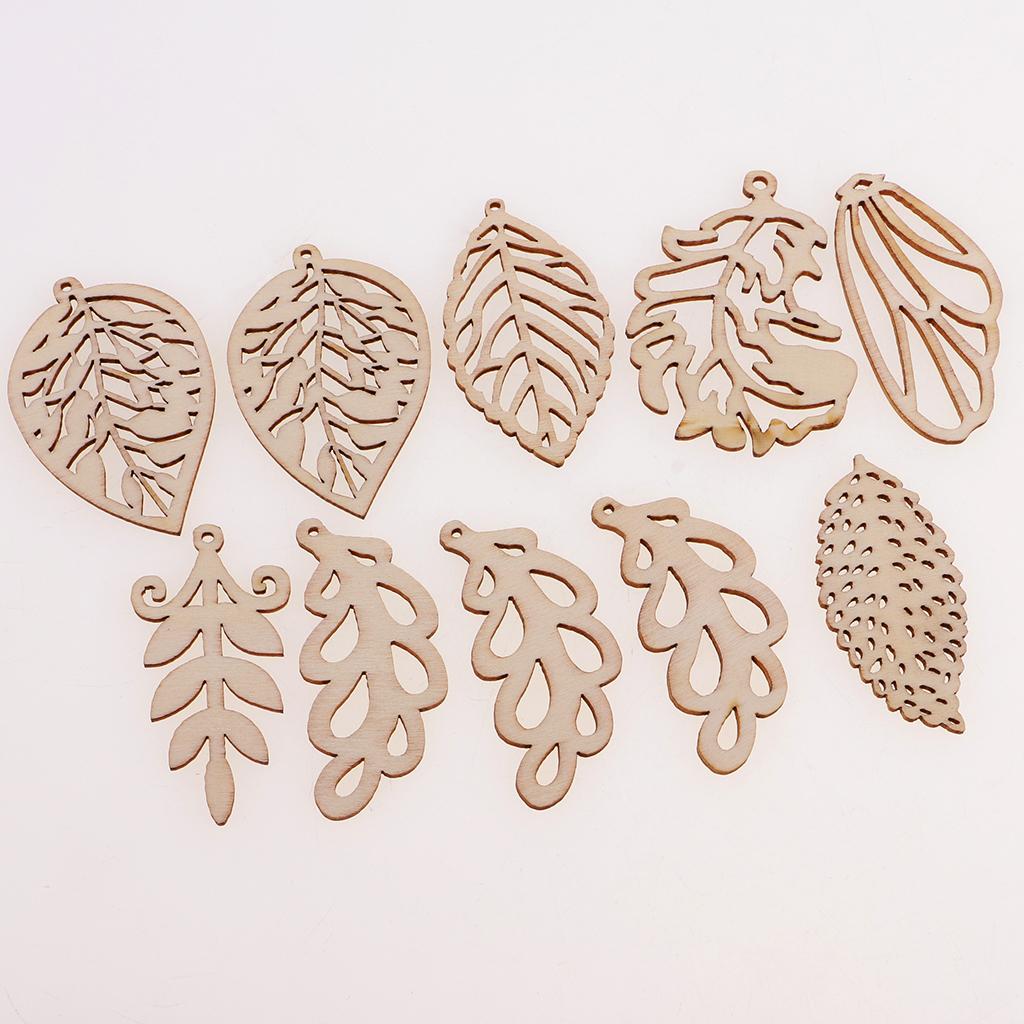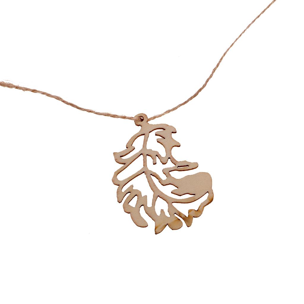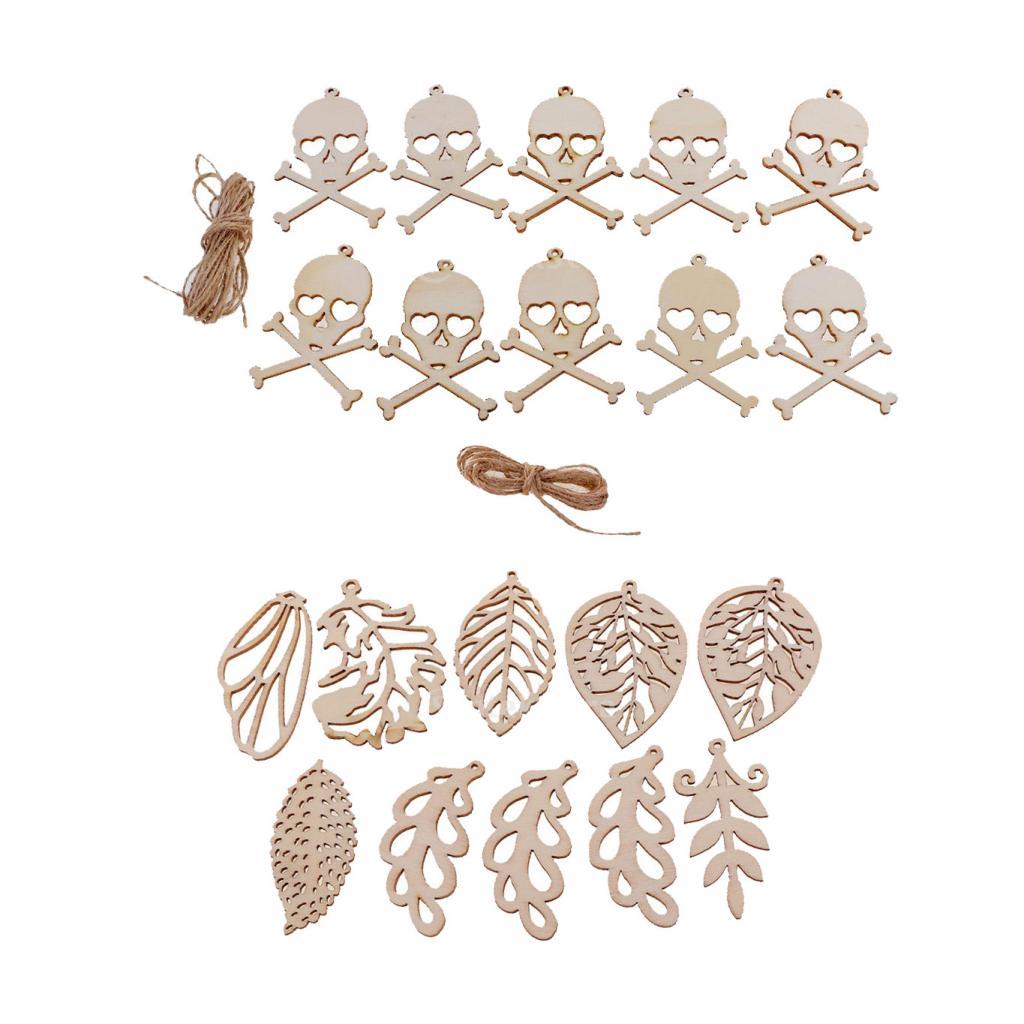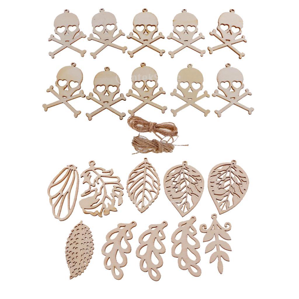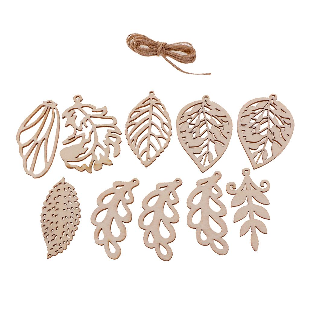 Natural wooden shapes with hole and natural twine, cut from high quality wood.